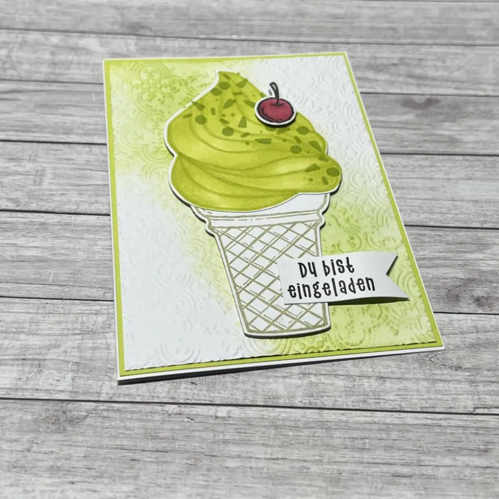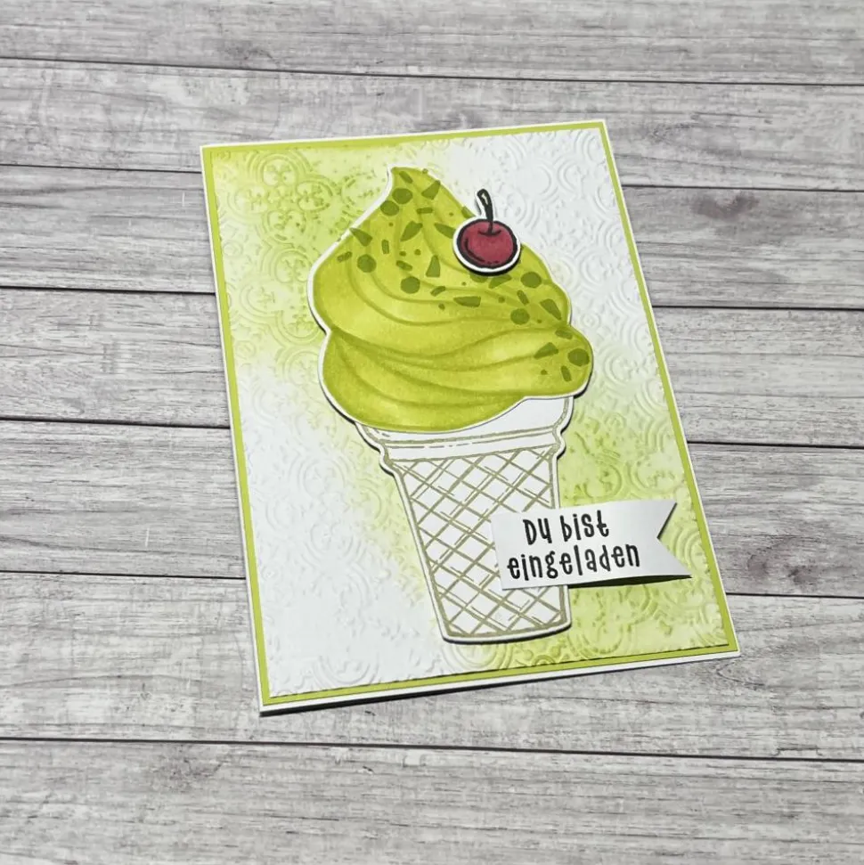 Grußkarten / Glückwunschkarten zum Geburtstag, „Einladung zum Eis essen“, Sommergrüße, Geburtstagskarte, Handarbeit