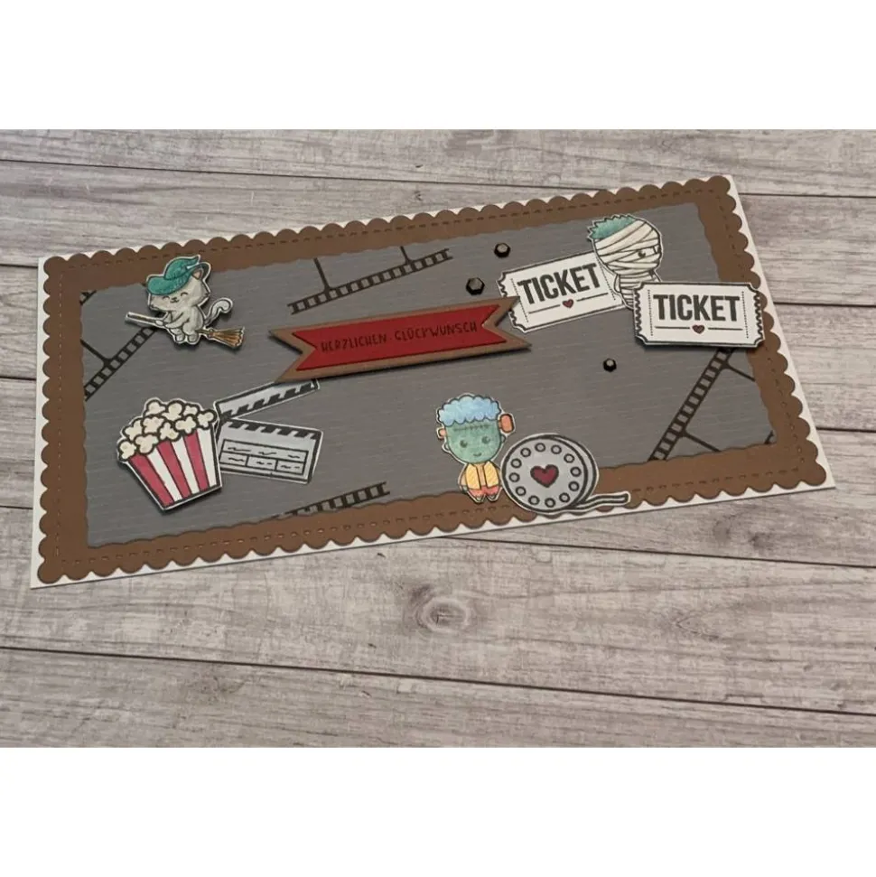 Grußkarten / Glückwunschkarten zum Geburtstag, „Gutschein für ein Kinoabend mit Popcorn, Halloween, Männer, Handarbeit