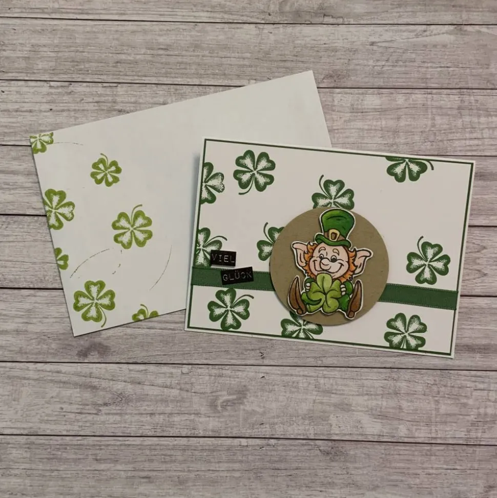 Grußkarten / Glückwunschkarten zum Geburtstag oder anderen Anlässen, Kobold wünscht „viel Glück“, Handarbeit