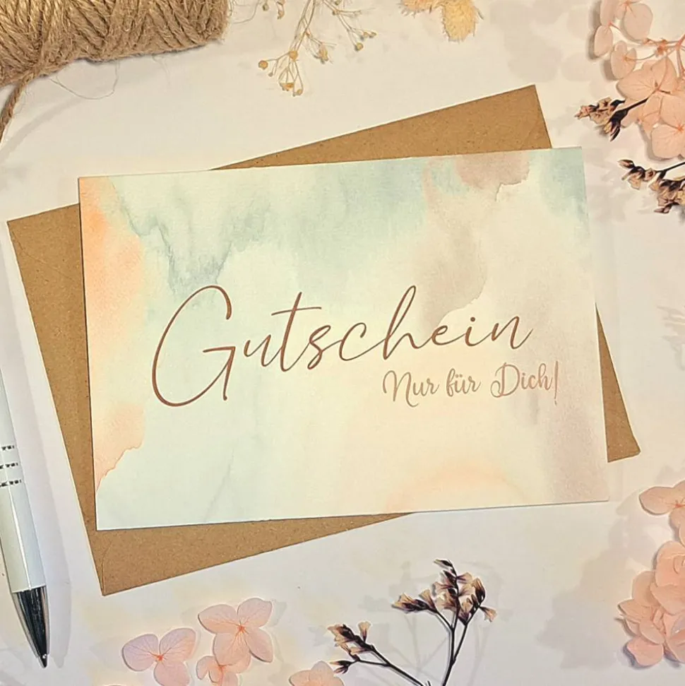 Sie erhalten eine wunderschöne Gutscheinkarte zum eigenen Beschriften.