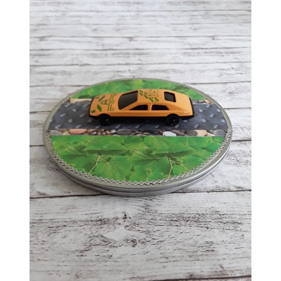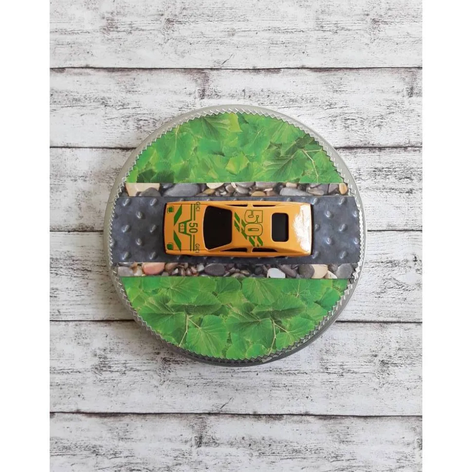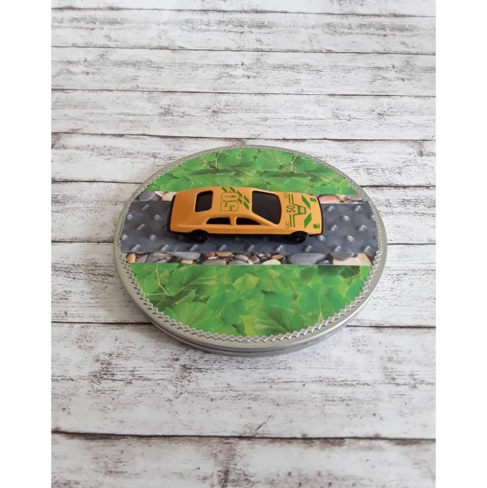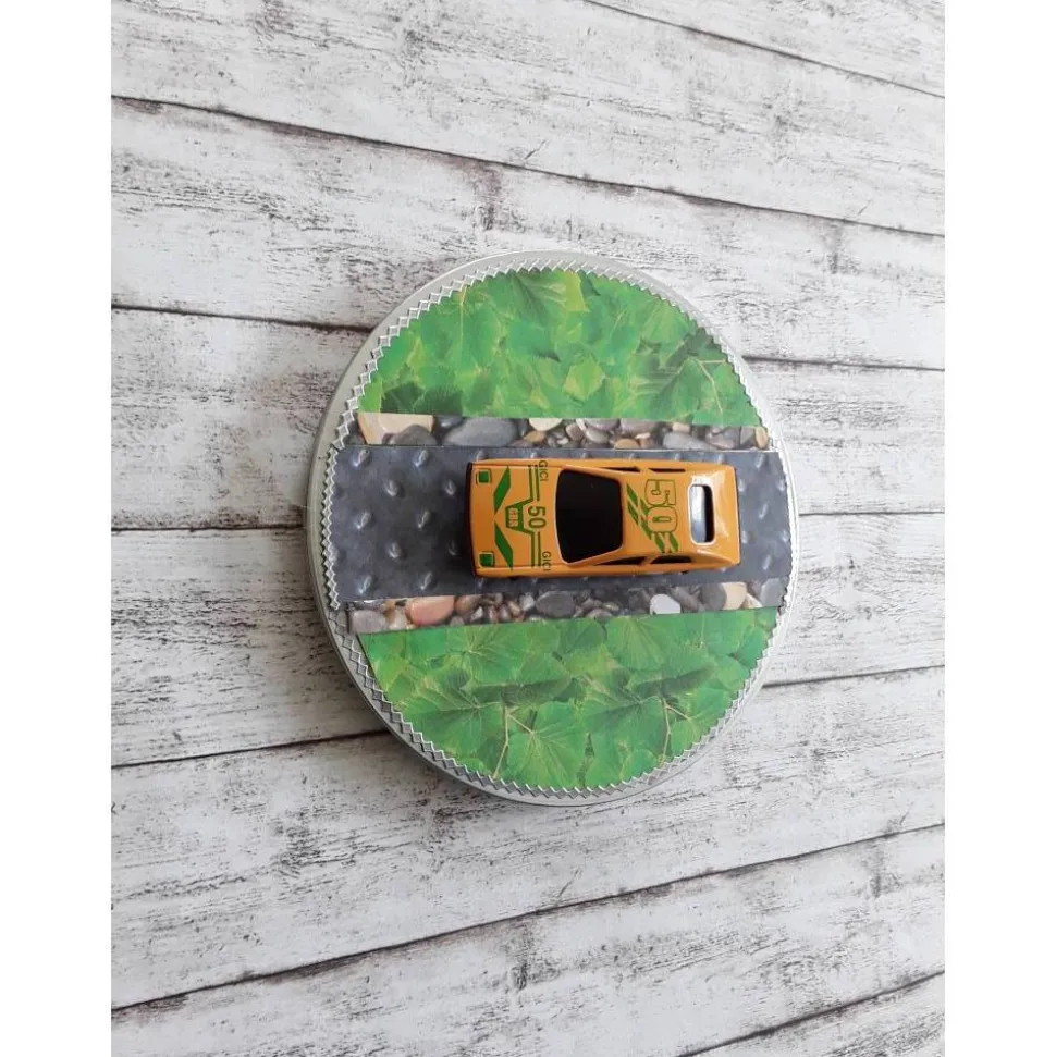 Wie wäre es in hübsch verpackt, mit dieser schönen runden Gutscheinbox für einen Tankgutschein. Vorne drauf ein Oldtimer in 3d Optik