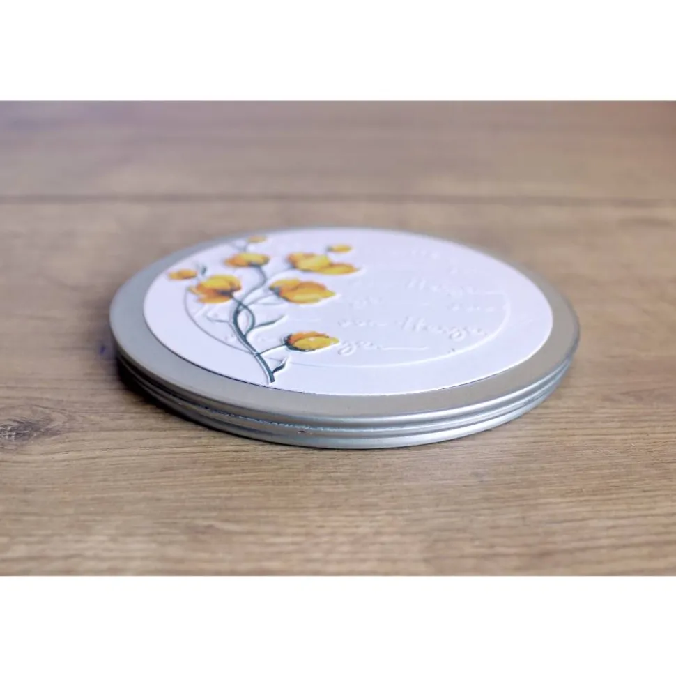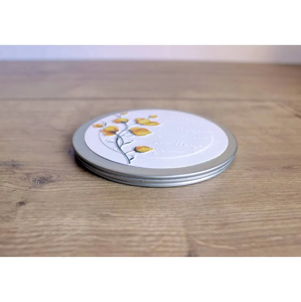 Die Gutscheindose „Butterblume“ kann für viele Gelegenheiten verwendet werden. Die geprägten Worte „von Herzen“ in edlem weiß bringen die Butterblume wunderschön zur Geltung.