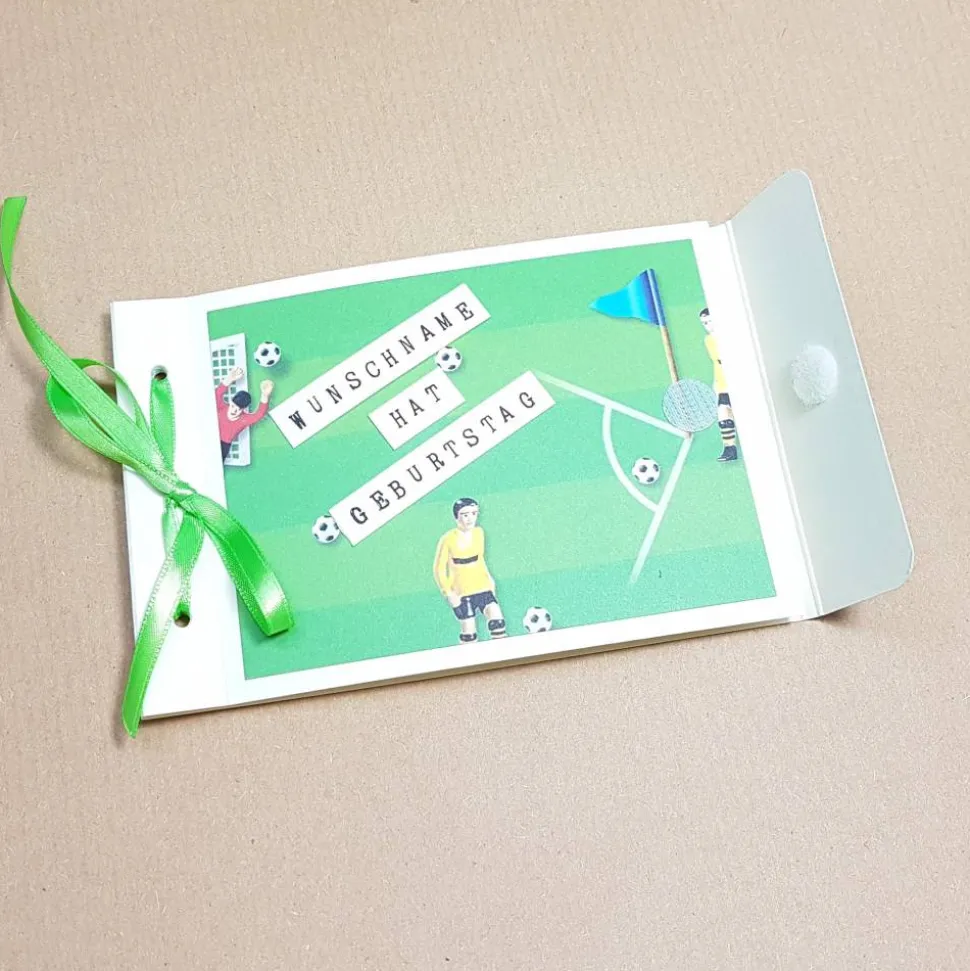 In diesem hübschen Gutscheinheft befinden sich 4 Blanko Gutscheine, die Sie selbst beschriften können, z.B. mit einem Gutschein für einen gemeinsamen Fußballabend, ein Fußballspiel oder all das, was der Beschenkte gerne mag.