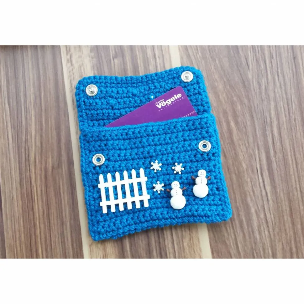 Sehr schönes Weihnachtsgeschenk ! Gutscheinkarten Täschchen Winter Ideale Verpackung für Gutscheinkarten, Geld, Schmuck oder andere Kleinigkeiten gehäkelt verziert mit Motiv-Knöpfen verschlossen mit Druckknöpfen