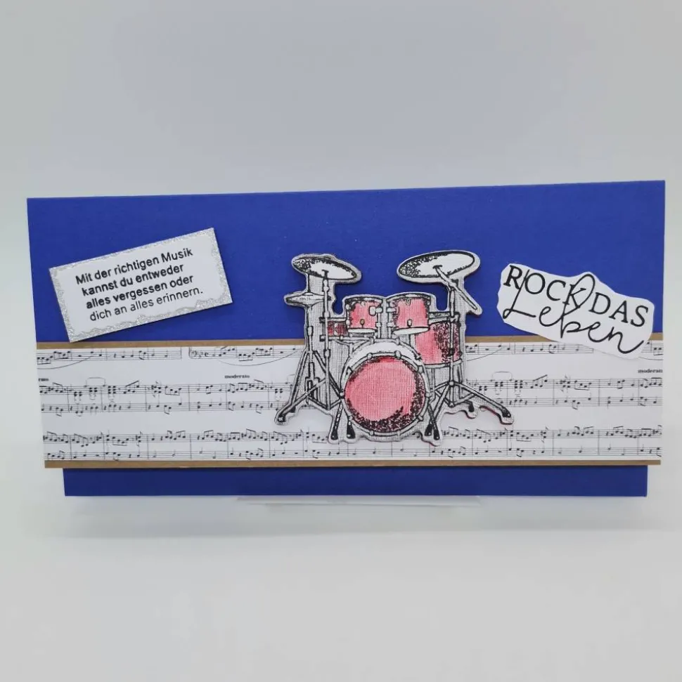 Diese exklusive Karte in edlem Blau und mit dem Motiv Instrument Schlagzeug bietet dir die perfekte Verpackung für Konzertkarten, Gutscheinkarten oder Geldscheine. Auf Wunsch kannst du das Musikinstrument auf der Karte individuell anpassen lassen – oder deine Lieblingsfarben wählen!