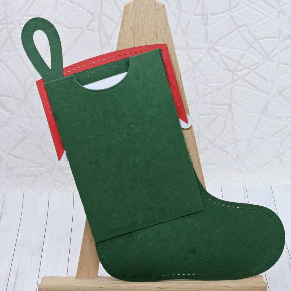 Diese liebevoll gestaltete Gutscheinverpackung in Form einer festlichen Weihnachtssocke im fröhlichen Elfen-Design ist ein echter Hingucker unter dem Weihnachtsbaum. Gefertigt aus stabilem 300 g/m² Fotokarton, kombiniert die Socke kräftiges Grün mit leuchtendem Rot und kleinen goldenen Pailletten, die wie Glöckchen funkeln. Damit ist sie nicht nur eine originelle Verpackung, sondern zugleich eine wunderschöne Dekoration für die Adventszeit.