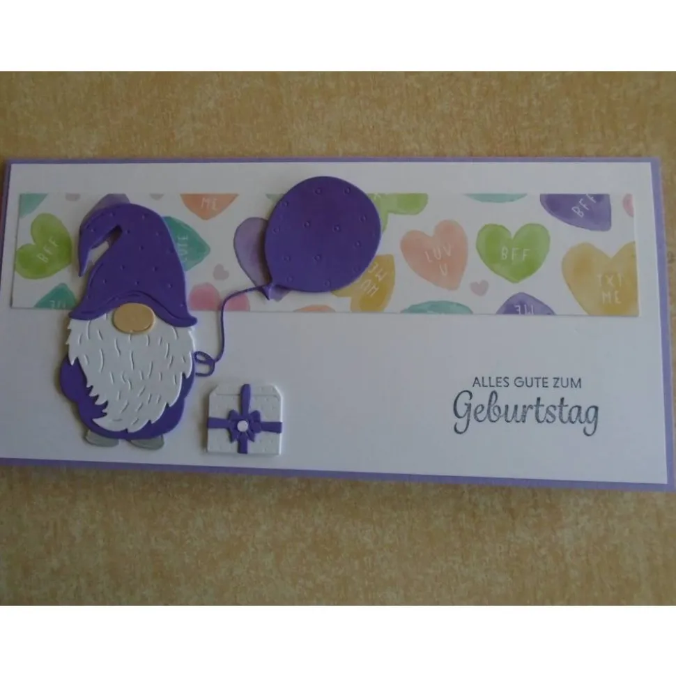 Verziert wurde dieses Gutscheinverpackung Geburtstagsverpackung Geldgeschenk Geburtstag mit einen Geburtstagssmotiv Wichtel mit Ballon