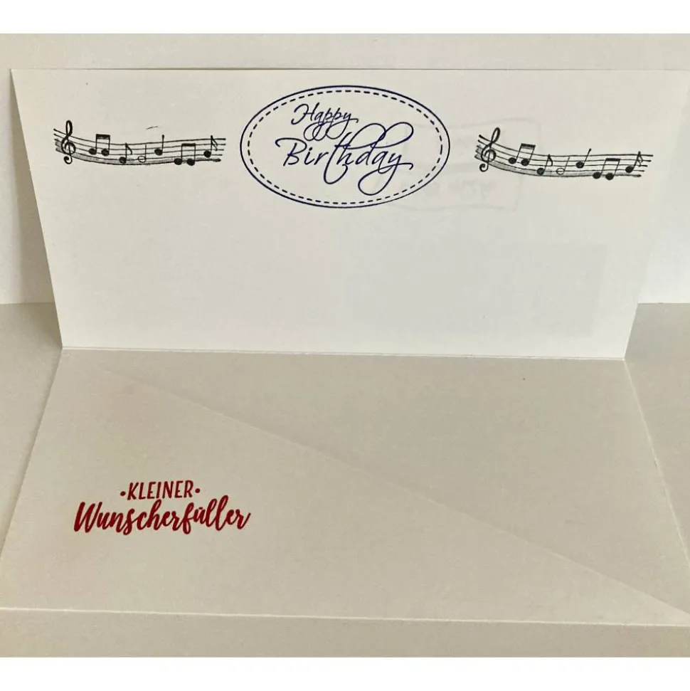 Im Innern der Karte ziert der Spruch Happy Birthday und Kleiner Wunscherfüller die Karte.