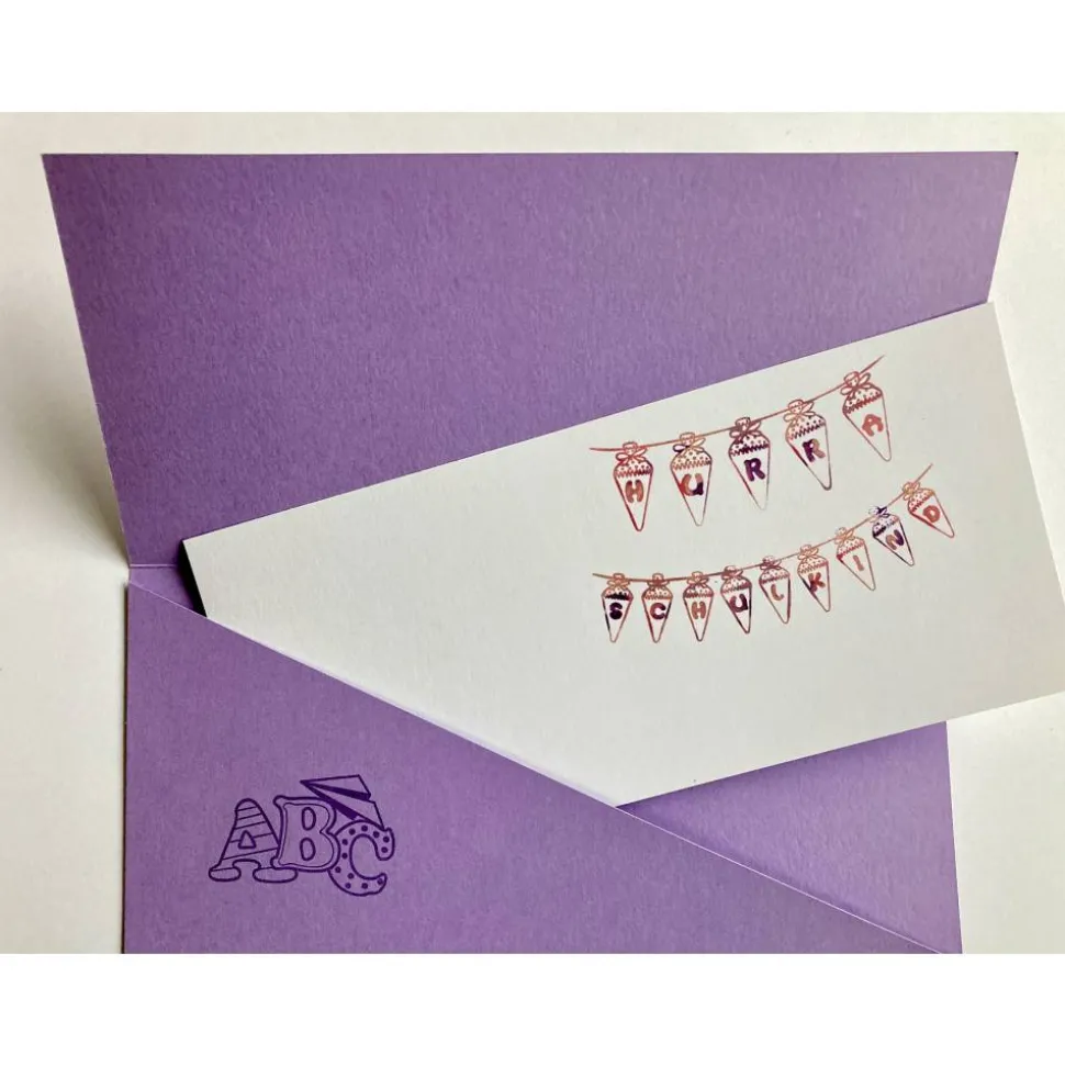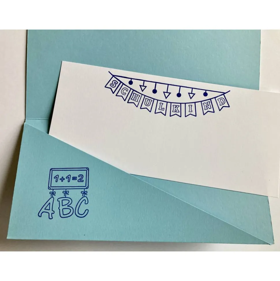 Im Innern des Umschlages ist eine weiße, bestempelte Karte für persönliche Worte und Wünsche.
