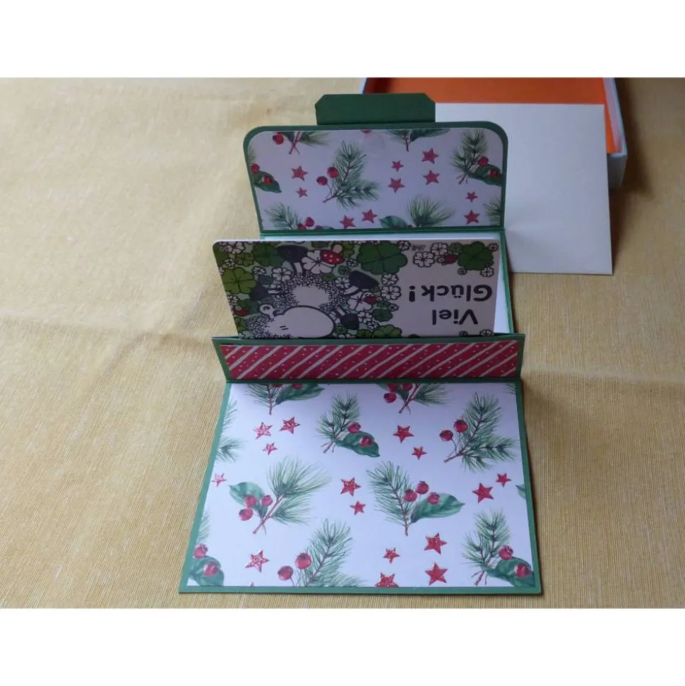 es passt eine Gutscheinkarte in Scheckkartenformat.