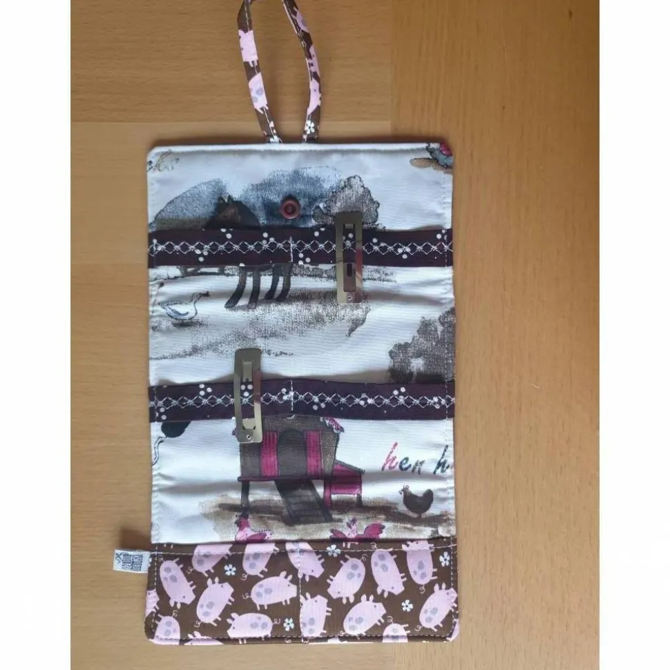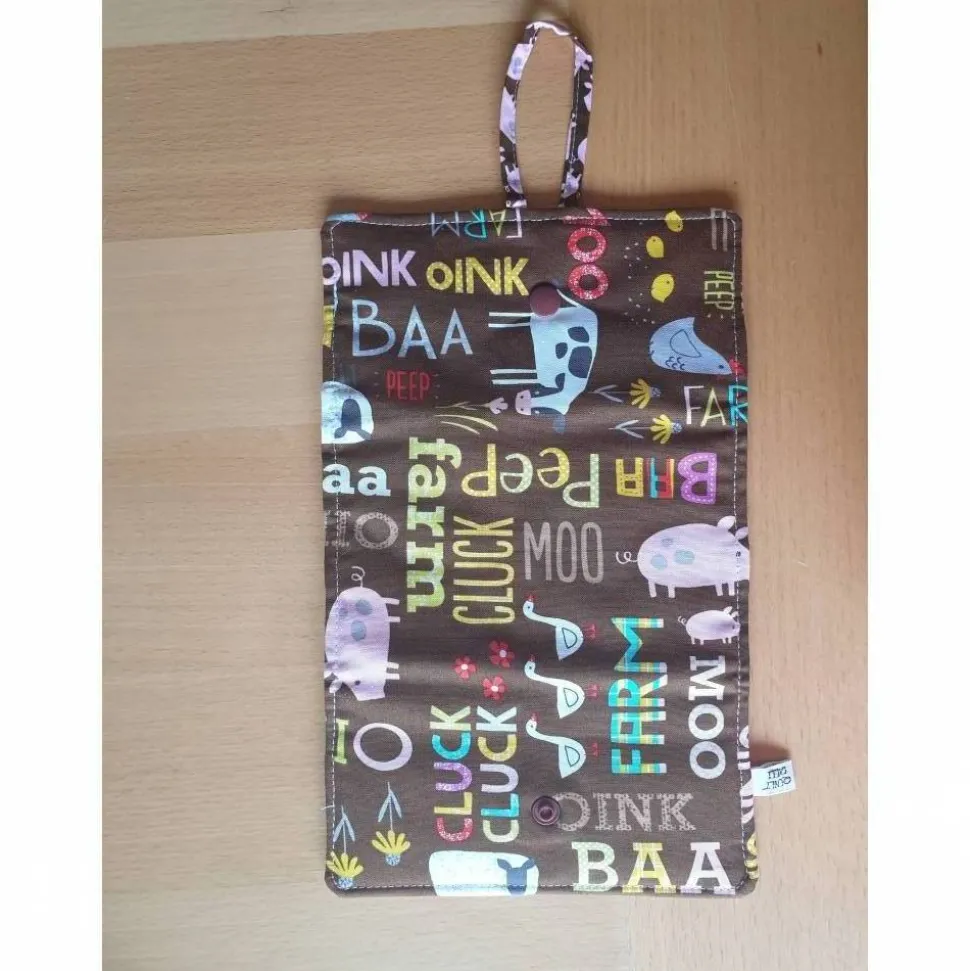 Dieses Utensilo kann durch eine Schlaufe an der Wand aufgehängt werden. Zusammengeklapt ist es als kleines Täschchen ideal für unterwegs und kann in die Schule mitgenommen werden ebenso wie zum Übernachtungsbesuch bei der Freundin oder der Oma.