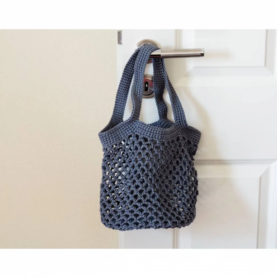 Der runde Boden sorgt für zusätzliche Stabilität. Zum Befüllen legst Du die Tasche am besten auf ihren runden Boden und stülpst die Seiten herunter. Lass Dich überraschen, wieviel die Tasche fasst und wie dehnbar sie wird. Du kannst Deine Häkeltasche in der Hand, aber auch über der Schulter tragen.