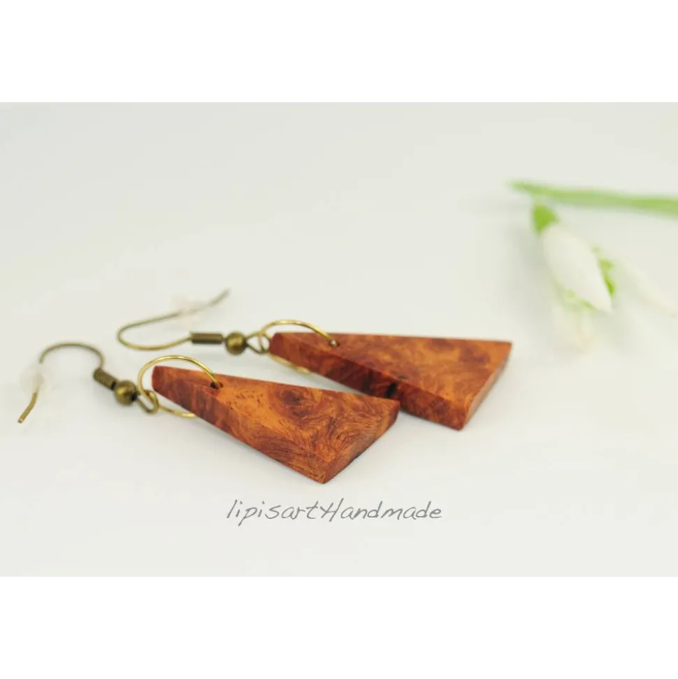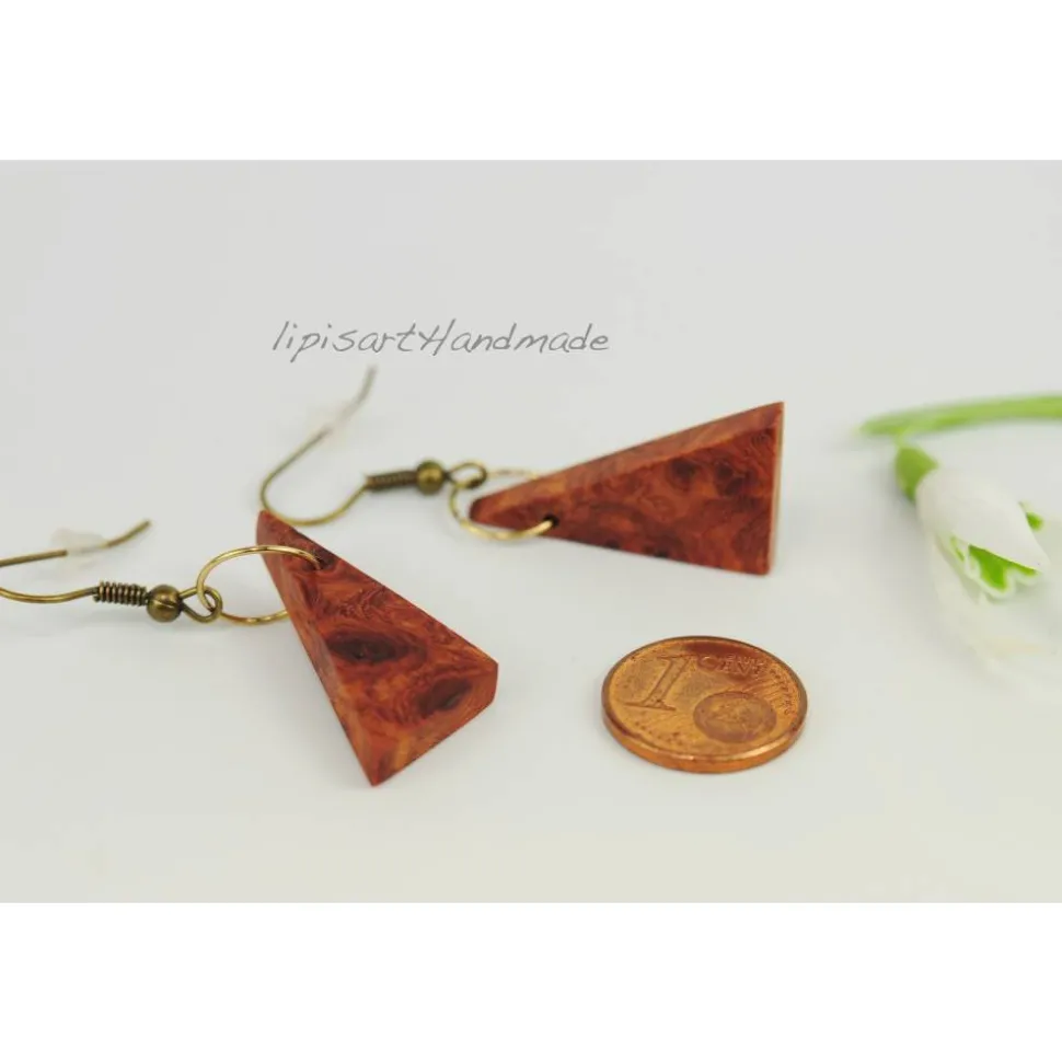 Amboina Holz, Messingdraht, Fischhaken bronzefarben