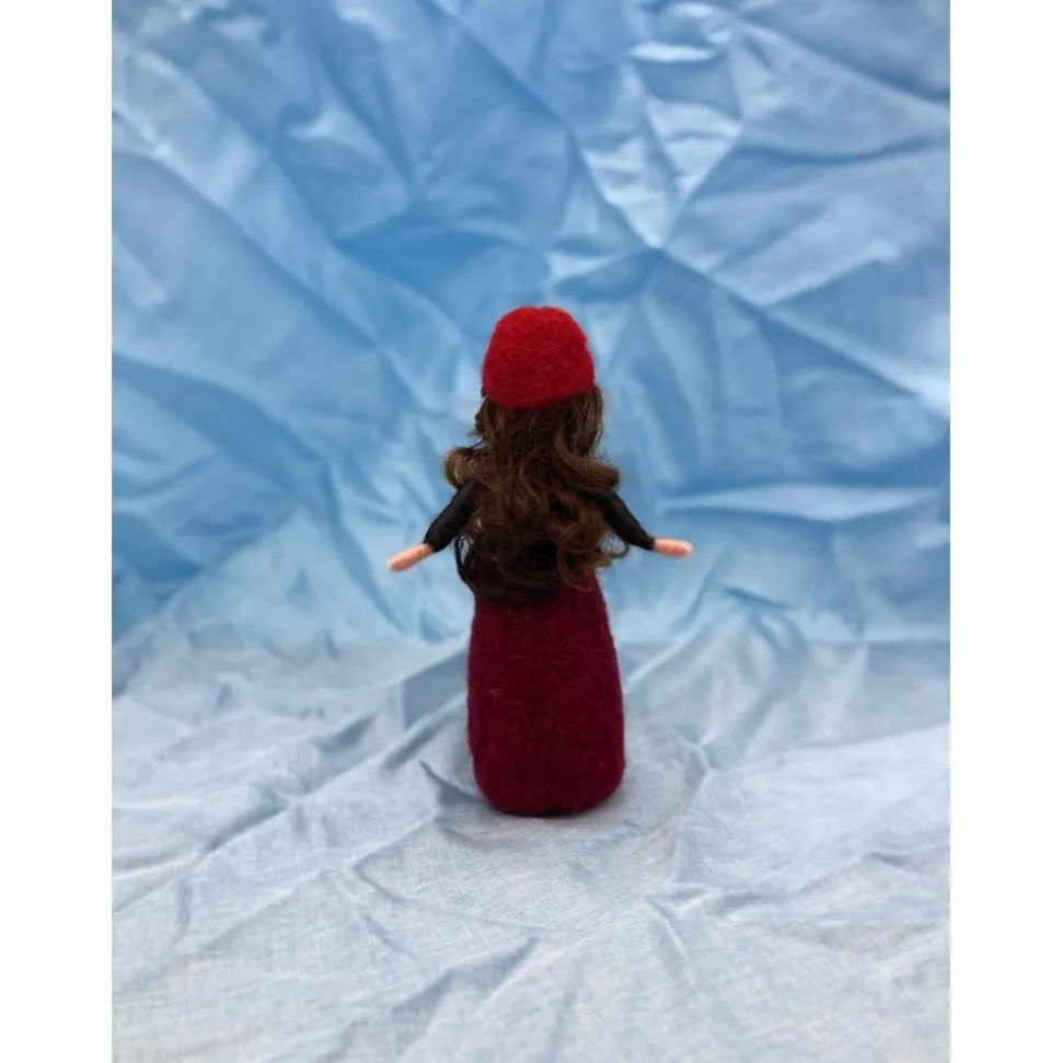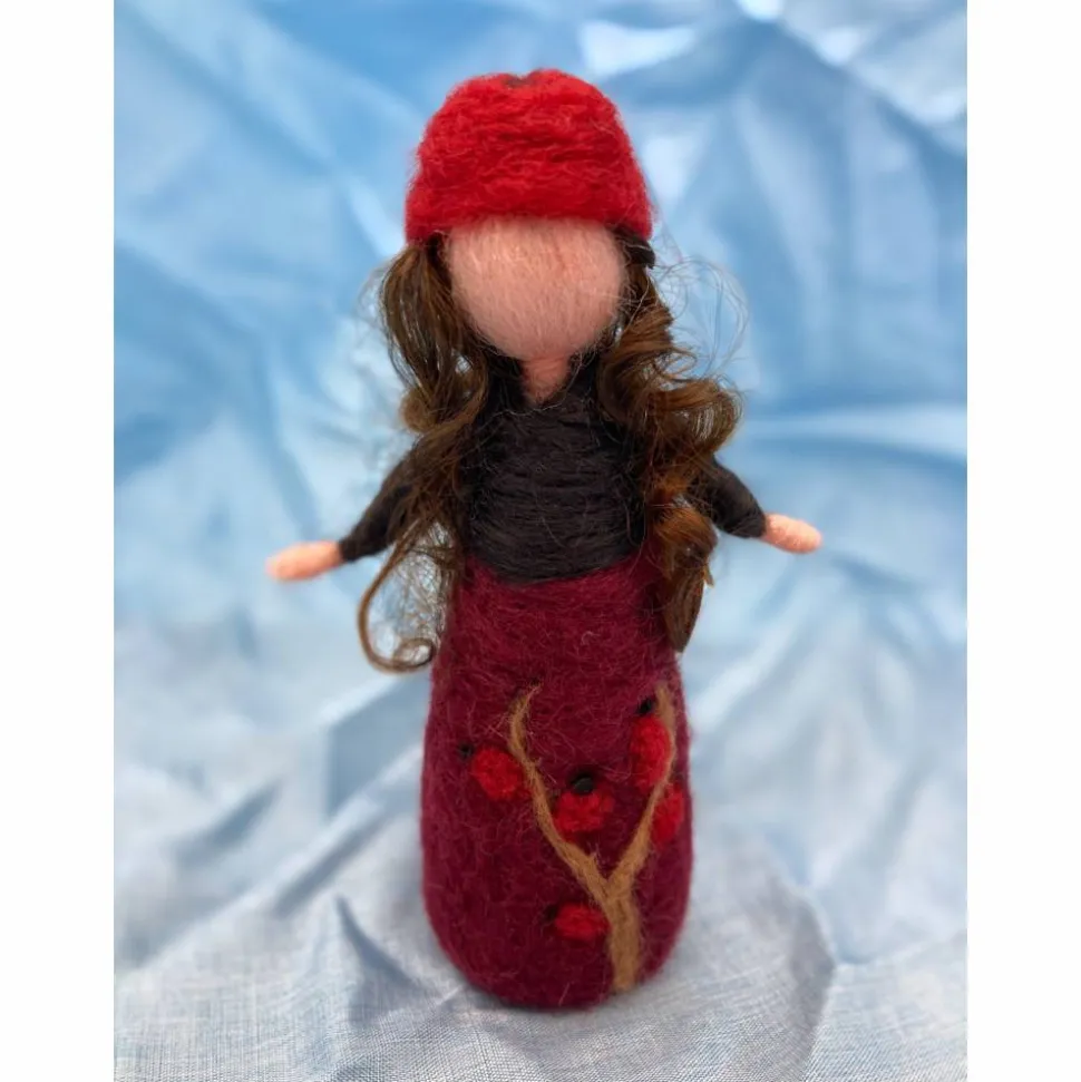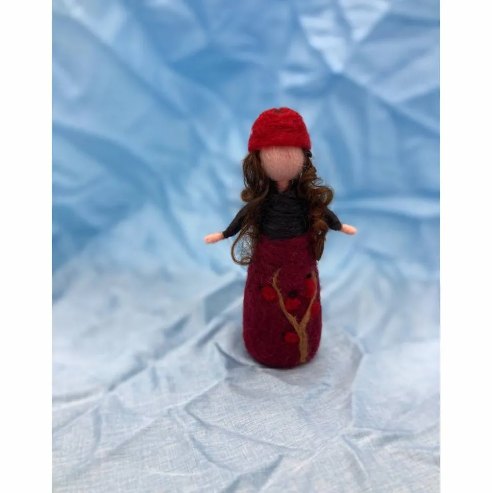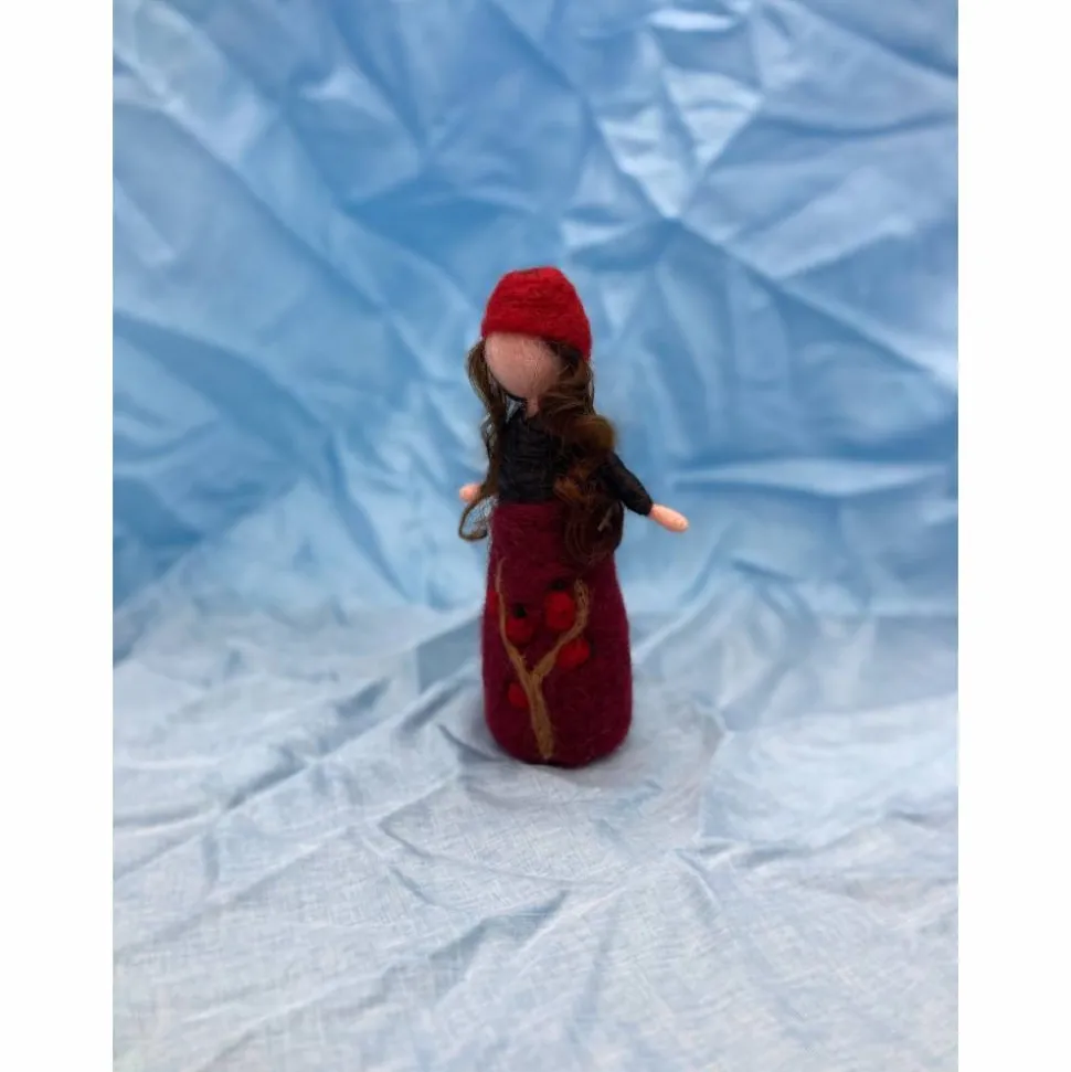 Das kleine Filzpüppchen ist 10 cm groß und wurde aus Merinowolle mit der Filznadel in Handarbeit angefertigt.