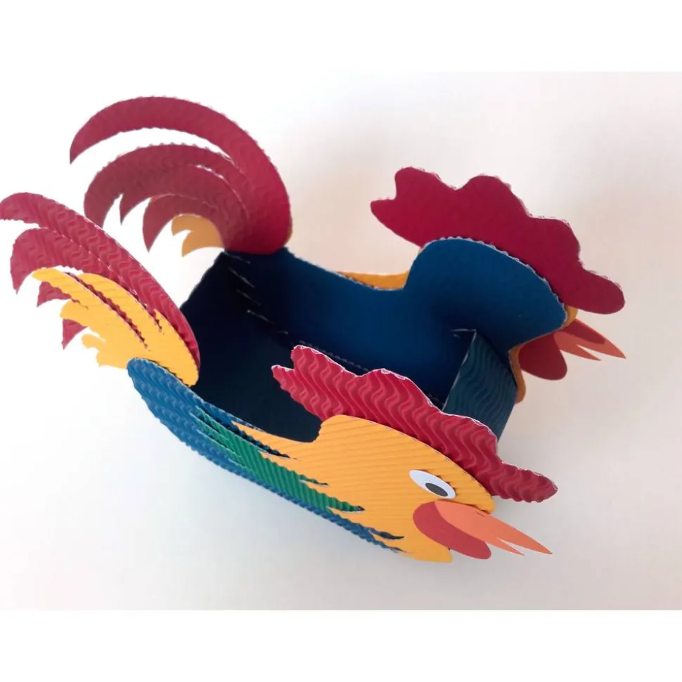 Hahn Osternest, Gockel als Osterkörbchen oder Osterdeko, Frühlingsdekoration aus Wellpappe, originelles Osternest