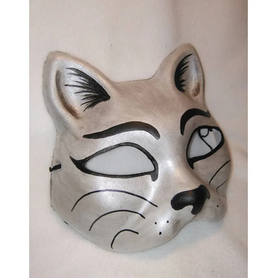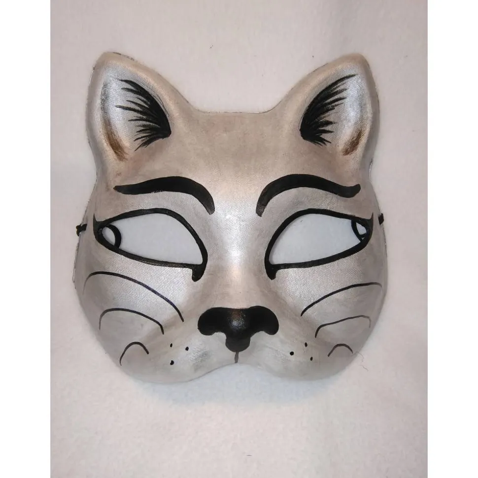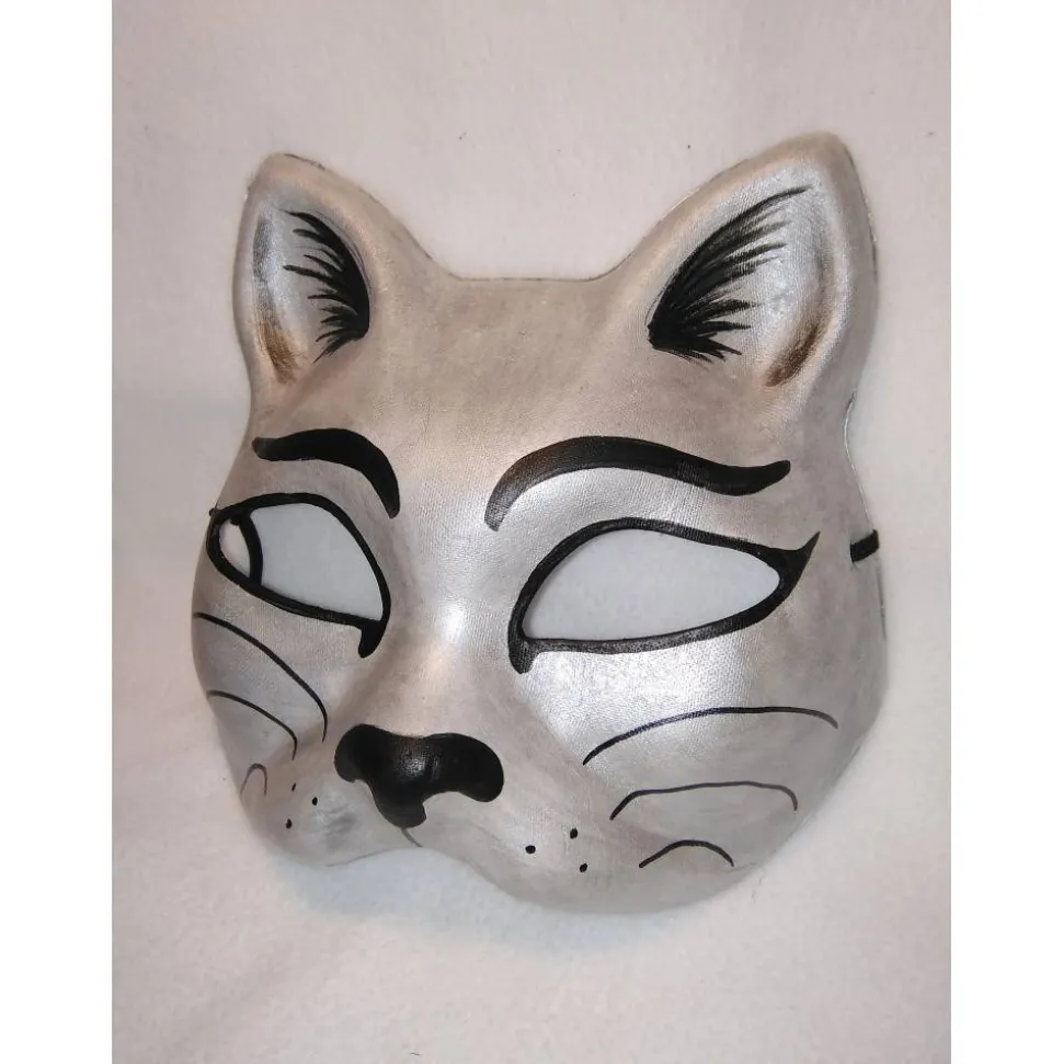 Entdecke die einzigartige Halbmaske „Katze silbern“ – handbemalt und individuell!
