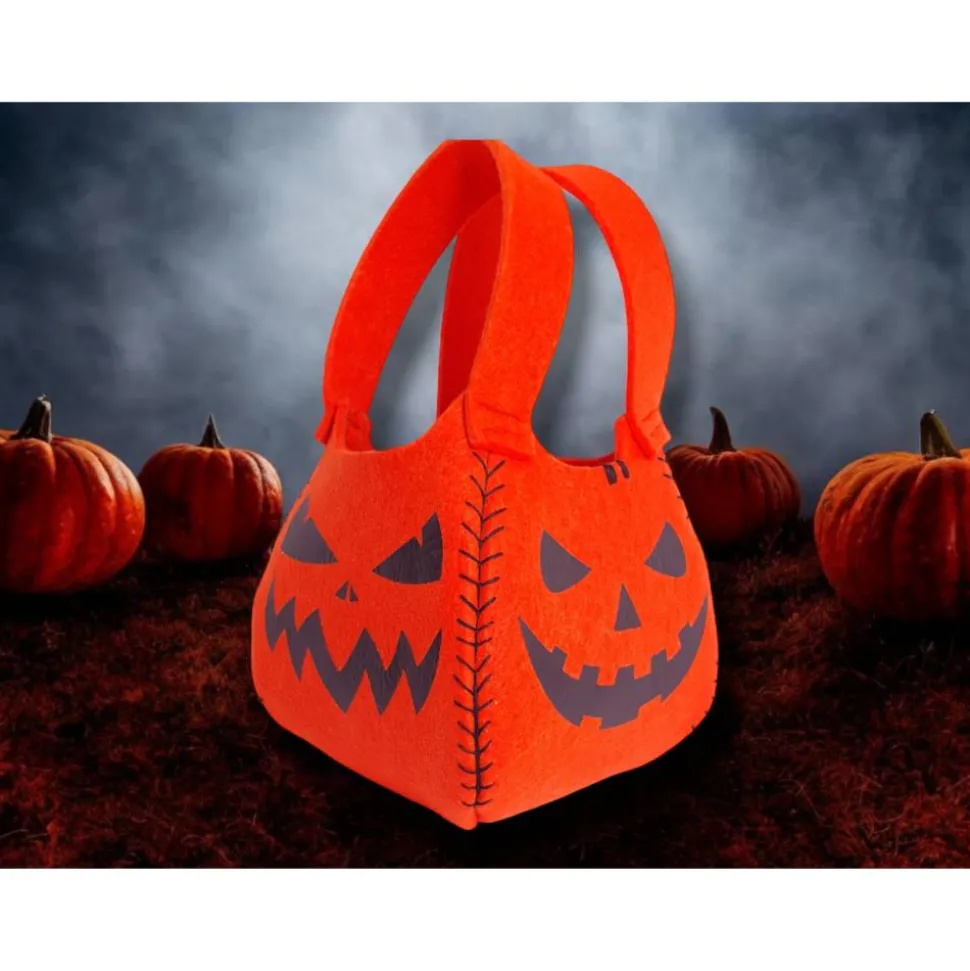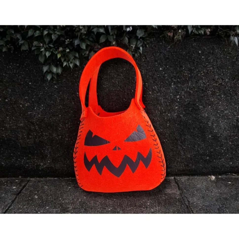 Dieser handgenähte Halloween-Beutel aus stabilem Filz ist der perfekte Begleiter für kleine Geister, Hexen und Kürbisköpfe!