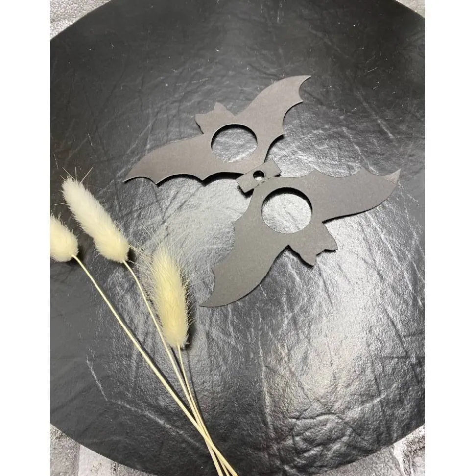 Ihr bekommt eine fertige Ausgestanzte Fledermaus mit Klebepunkte zum selbst zu kleben.