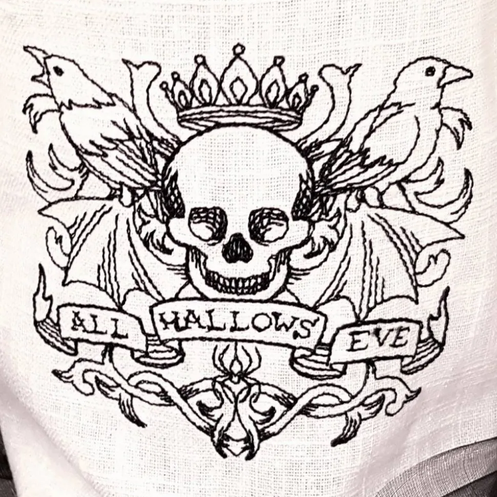 Halloween Windlicht Lichtbeutel Vasenhusse Geschenkbeutel Skull mit Spruch GESTICKT Leinen Spitze