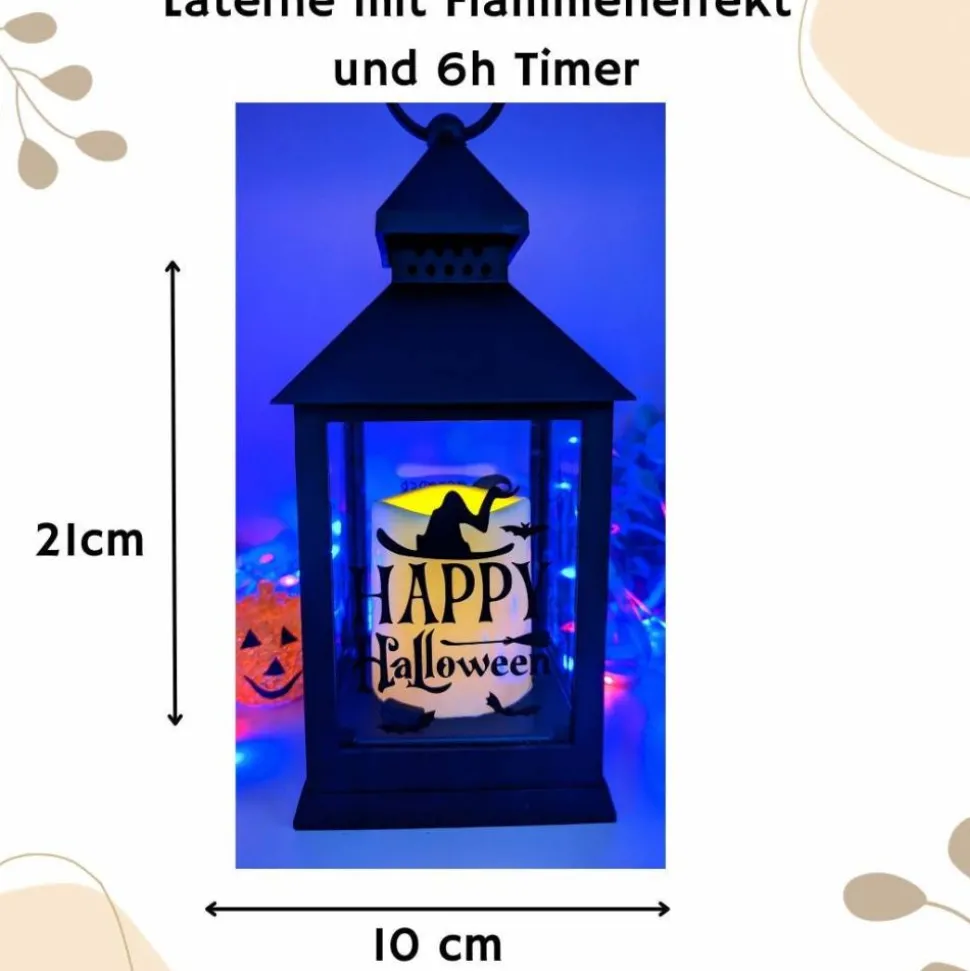 Jede der vier Seiten der Halloween-Laterne zeige eine andere Halloween Scene! Diese Laterne ist ein Must have!! auf jeder Halloween Party oder auch als Geschenk zur Party für Freunde. Die Halloween Laterne hat einen 6h Timer, ein mal eingeschaltet leuchtet sie 6h und schaltet sich dann wieder aus, am anderen Tag zur gleichen Zeit geht sie wieder an.
