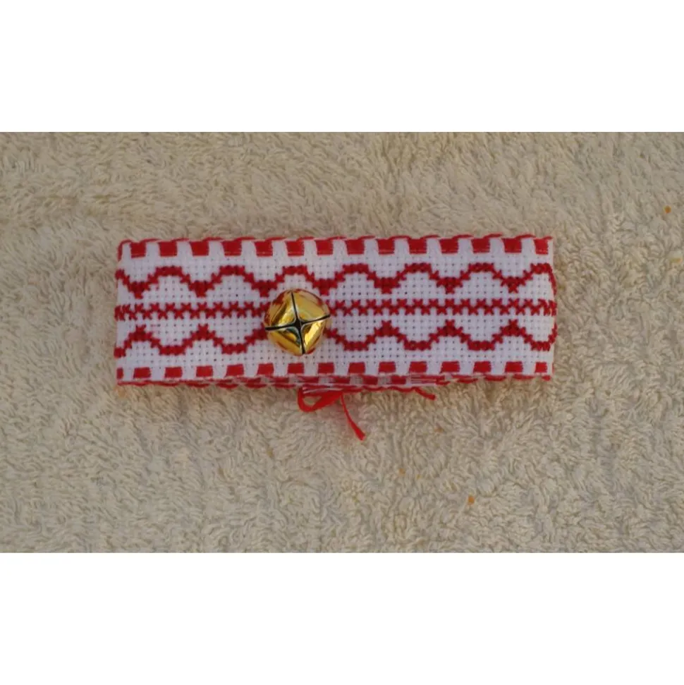 Halsband für Osterlamm Aidastoff bestickt, Kreuzstich rot weiß