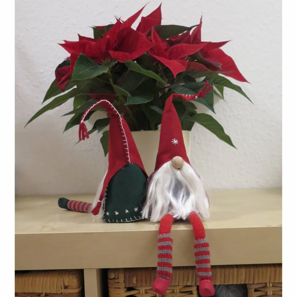Material: Filz aus 100% Polyester, Schuhe aus Holz, Bart aus 100% Rohseide, Strickschlauch aus 100 % Polyester, Füllwatte aus 100% Polyester, Füllgranulat aus 100% Polypropylen, Stickgarn aus 100% Baumwolle