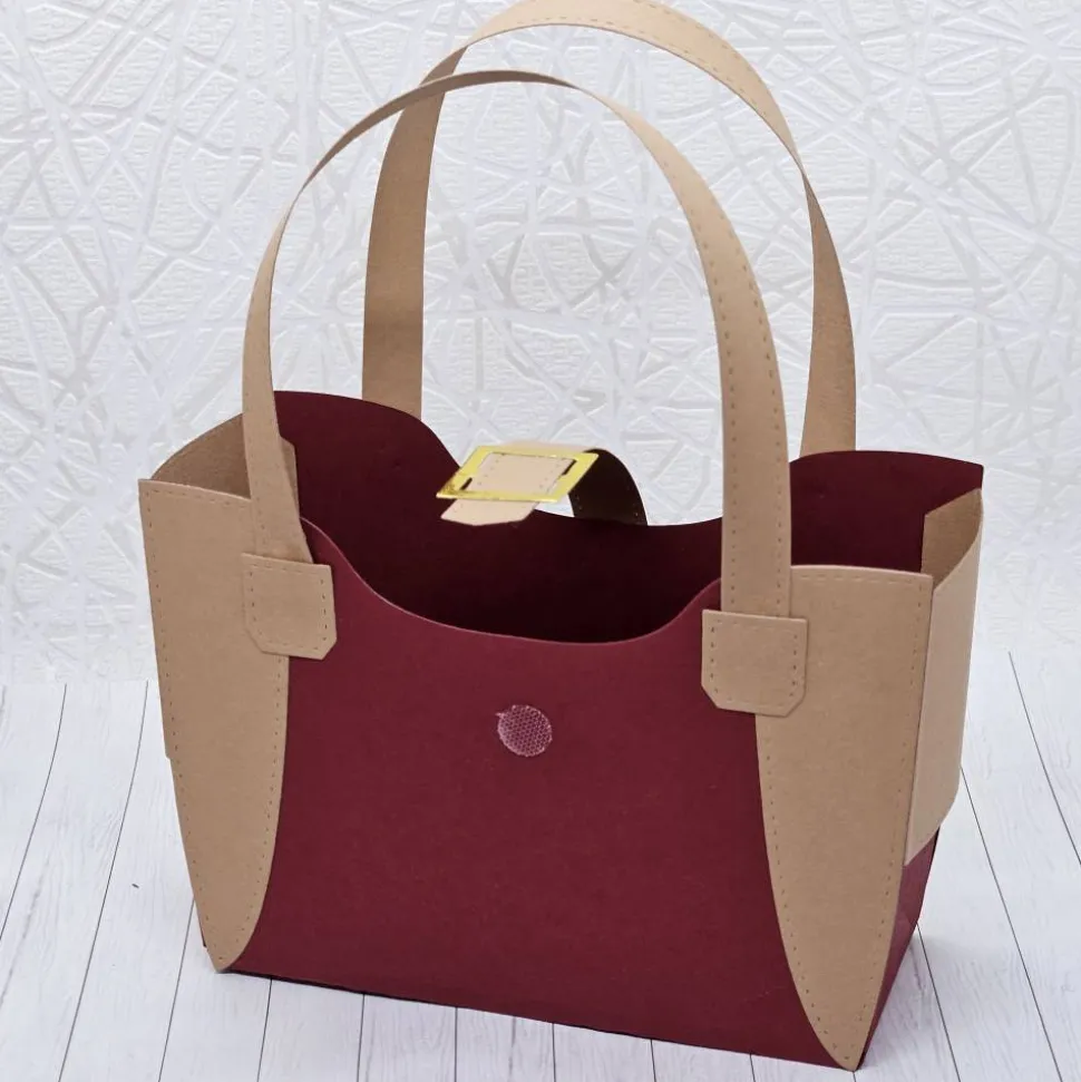 Diese liebevoll handgefertigte Geschenkverpackung in Taschenform ist nicht nur eine stilvolle Art, kleine Aufmerksamkeiten zu verschenken, sondern selbst ein echter Blickfang. Gefertigt aus hochwertigem 300 g/m² Fotokarton, überzeugt sie durch ihre stabile Form, klare Linien und detailverliebte Verarbeitung. Die harmonische Farbkombination aus Bordeauxrot und Beige wird durch eine elegante, goldene Schnalle veredelt, die der Box eine edle, fast lederähnliche Optik verleiht.