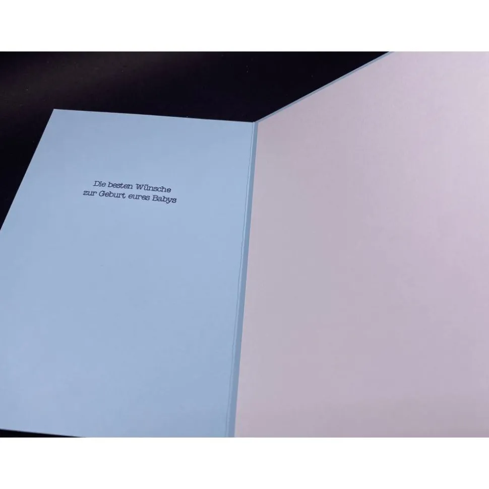 Innen ist auf der linken Seite ein Spruch gestempelt („Die besten Wünsche zur Geburt eures Babys“). Rechts habt ihr ausreichend Platz für eure Glückwünsche.