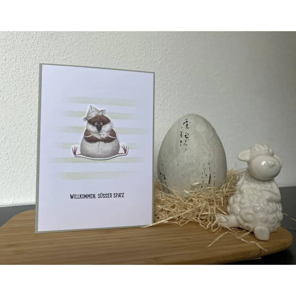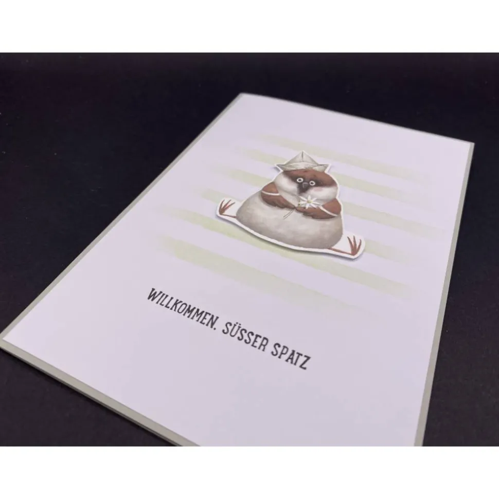 Innen ist auf der linken Seite ein Spruch gestempelt („Schön, dass du da bist“). Rechts habt ihr ausreichend Platz für eure Glückwünsche.