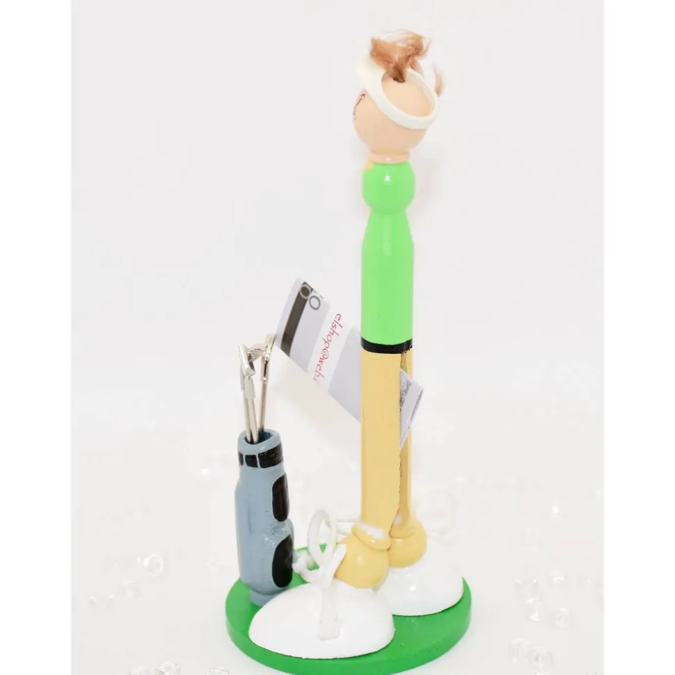 Entdecke jetzt meine handgefertigte Golfer-Holzfigur – das perfekte Geschenk für Golf-Liebhaber und ein stilvolles Unikat für deine Deko. Diese charmante Figur wird mit viel Liebe zum Detail in reiner Handarbeit gefertigt und ist ca. 16,5 cm groß. Sie steht auf einer runden Grundfläche mit einem Durchmesser von 7 cm.