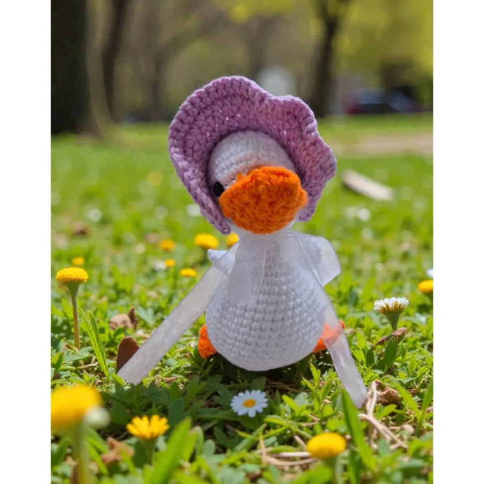 - Niedliches Design: Die Gans trägt einen abnehmbaren, fliederfarbenen Sonnenhut, der mit einem edlen Organzaband befestigt ist.