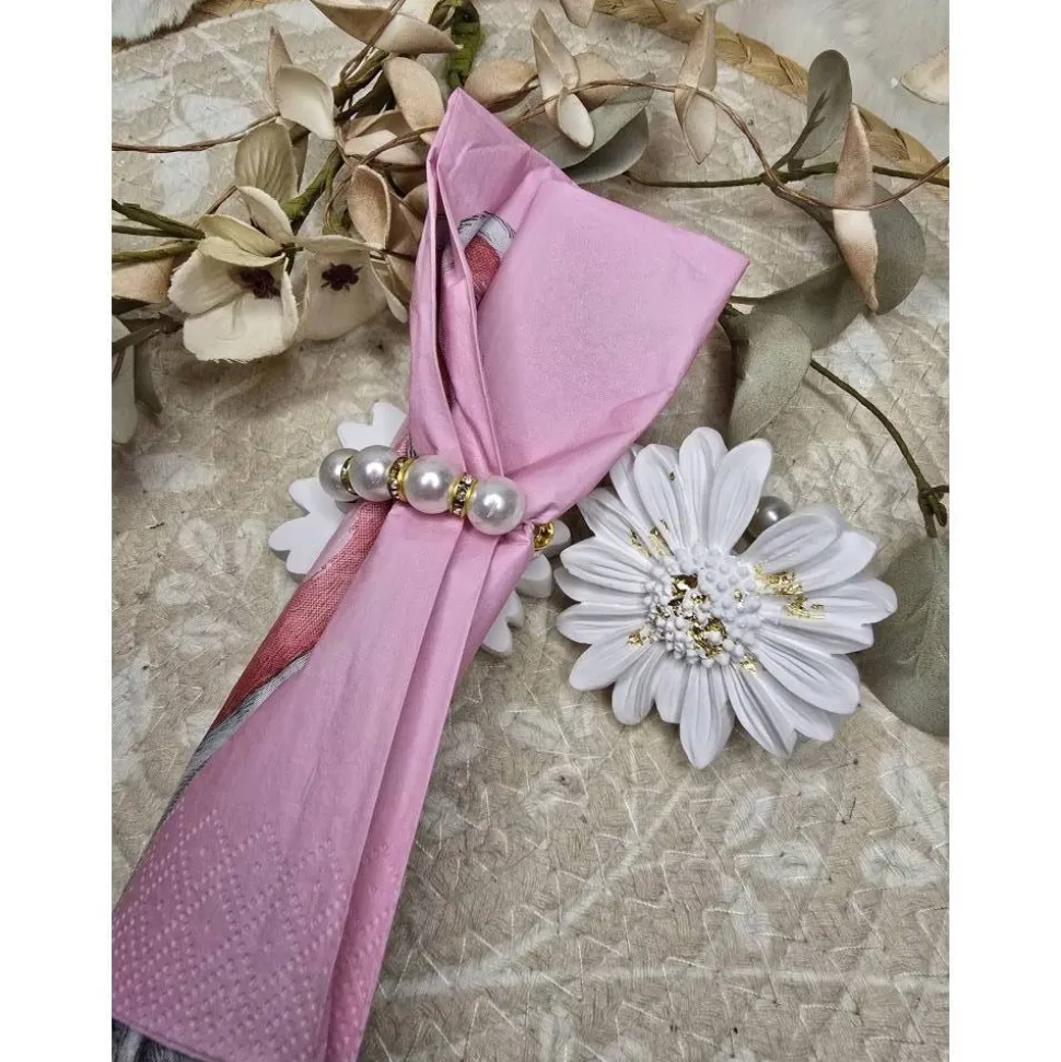 Maßgeschneiderte Schönheit: Der Blütendurchmesser beträgt ca. 6 cm, der flexible Perlenring mit Goldelementen hat einen Durchmesser von ca. 3,5 cm und passt sich deiner Serviette harmonisch an. Das zeitlose Design in Weiß mit goldenen Akzenten macht die Serviettenringe ideal für Hochzeiten, Taufen, Kommunion, Konfirmation, Geburtstage oder stilvolle Dinnerabende.