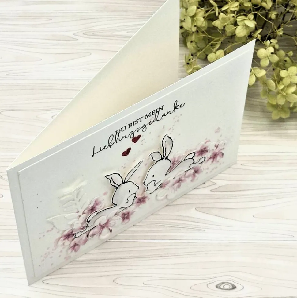 Diese handgefertigte Valentinstagskarte trägt den liebevollen Spruch „Du bist mein Lieblingsgedanke“ und ist eine wunderschöne Art, Gefühle ehrlich und persönlich auszudrücken.
