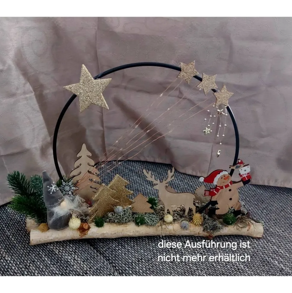 Du bekommst einen weihnachtlich geschmückten Metallring mit 30 cm Durchmesser, der auf ca. 40 cm langen Birkenästen steht. Die integrierte Beleuchtung sorgt für eine gemütliche Atmosphäre – Batterien sind bereits enthalten. So erhältst du eine ganz besondere Weihnachtsdekoration, die sich perfekt für dein Zuhause eignet oder sich wunderbar als Geschenk macht.