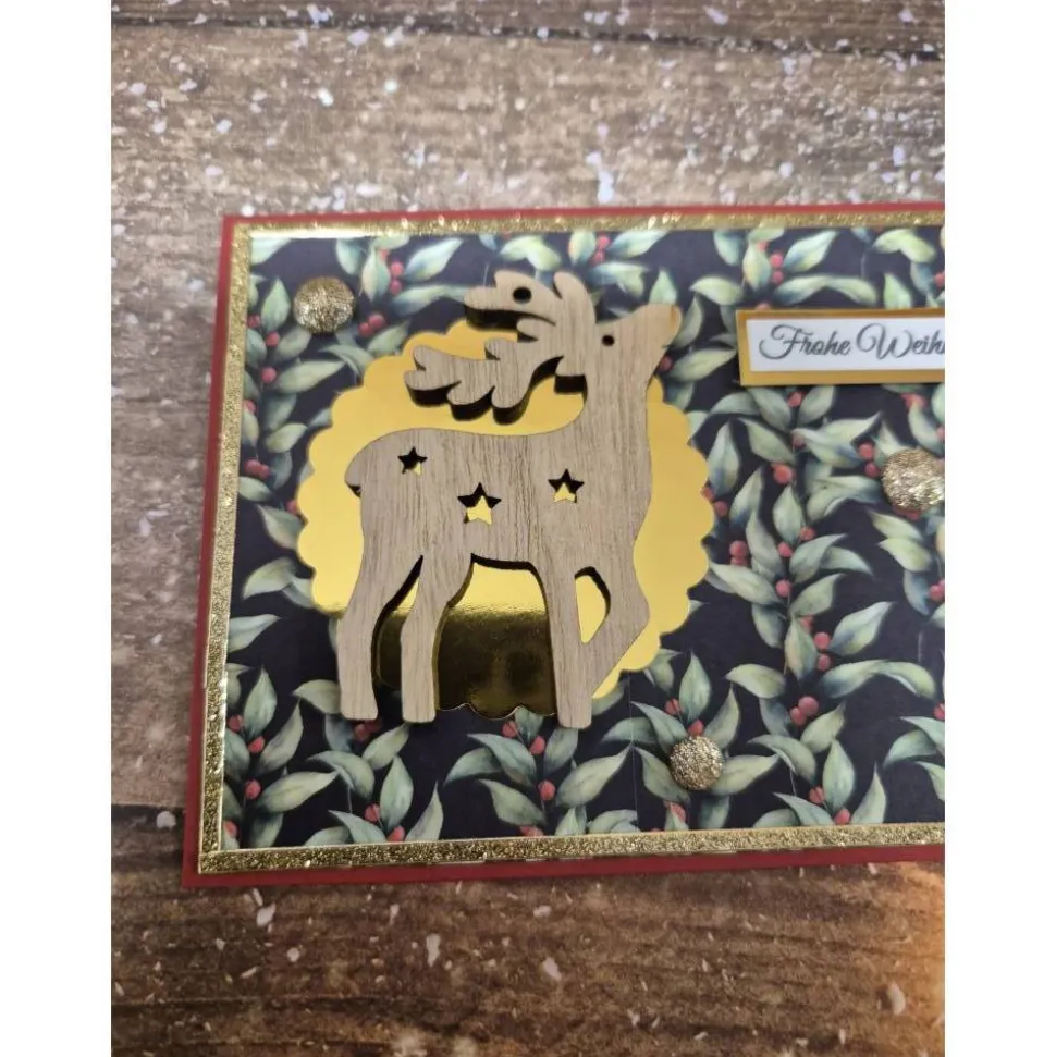 Ob für Freunde, Familie oder Kollegen – diese handgefertigte Weihnachtskarte mit Rentier aus Holz ist das ideale Accessoire für deine festlichen Grüße!