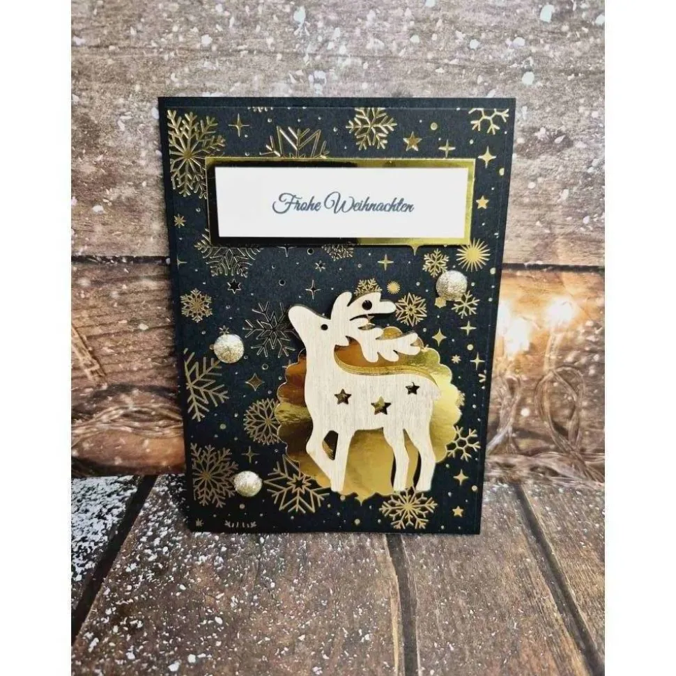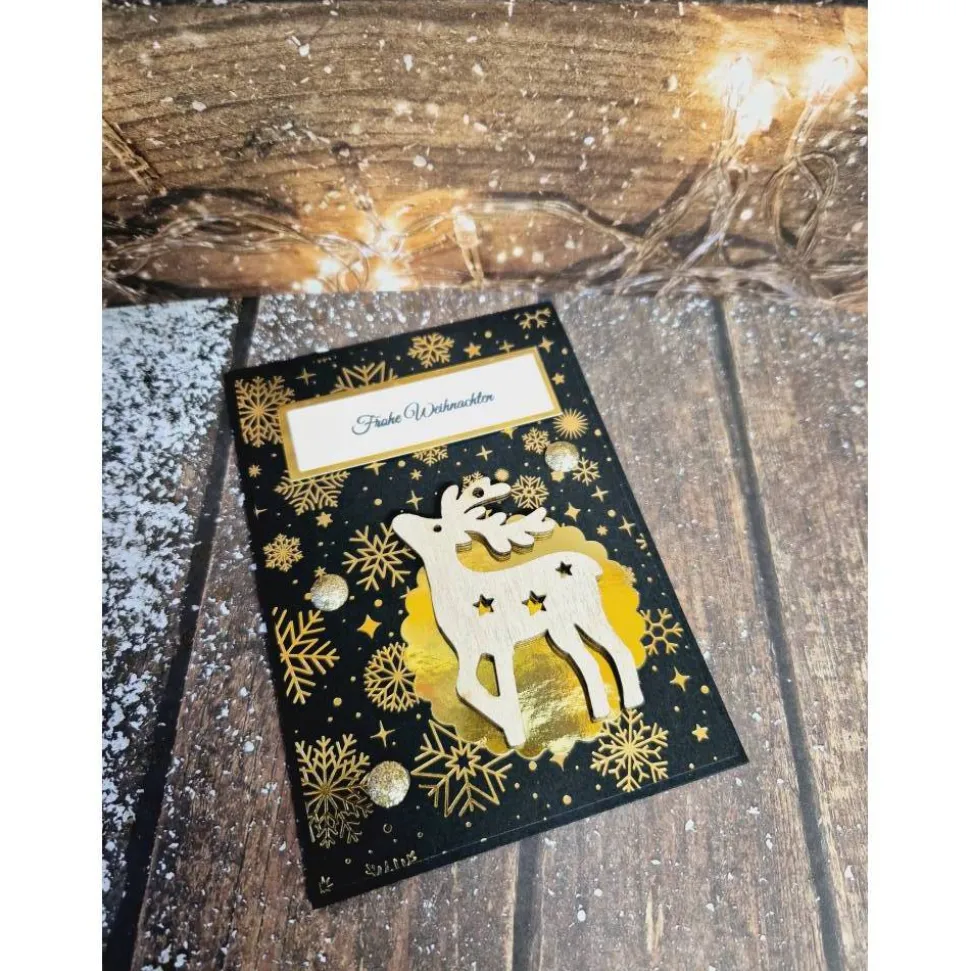 Ob für Freunde, Familie oder Kollegen – diese handgefertigte Weihnachtskarte mit Rentier aus Holz ist das ideale Accessoire für deine festlichen Grüße!
