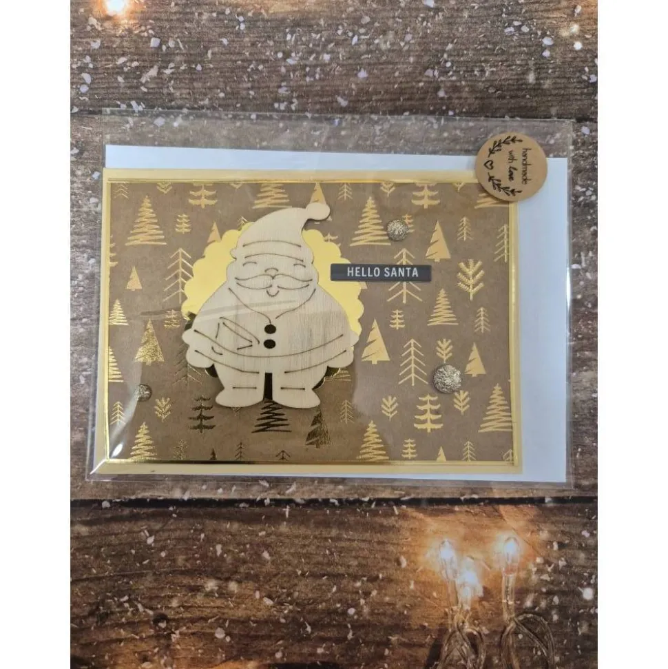 Ob für Freunde, Familie oder Kollegen – diese handgefertigte Weihnachtskarte mit Weihnachtsmann aus Holz ist das ideale Accessoire für deine festlichen Grüße!
