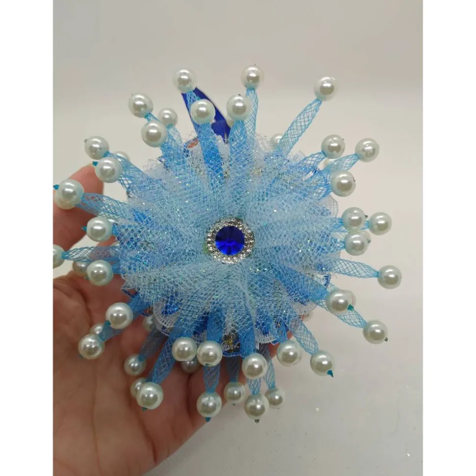 Diese zarte Schneeflocke in Hellblau und Perlweiß wirkt wie ein kleines Winterwunder.