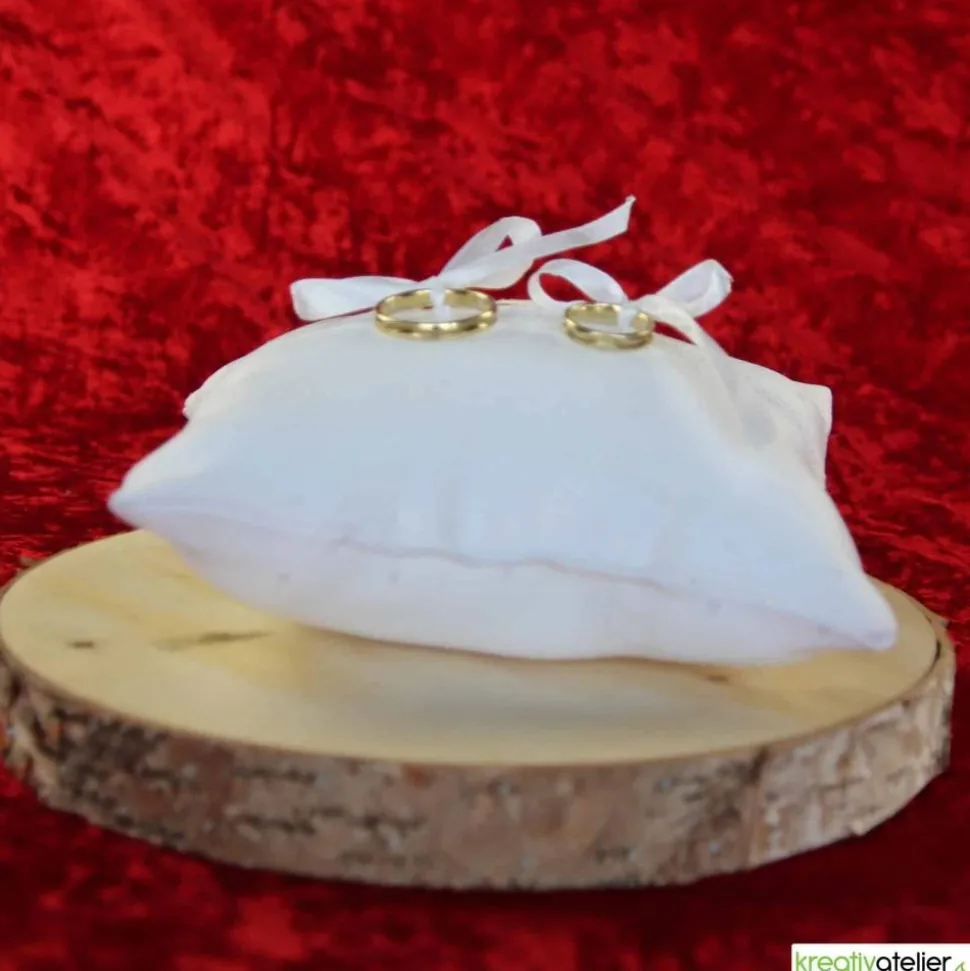 Entdecken Sie dieses handgearbeitete Ringkissen aus Damast in Weiß, das sich durch seine Eleganz und feine Details auszeichnet – perfekt für Ihre Hochzeit. Dieses Kissen aus leicht glänzendem Damast bietet den idealen Rahmen für Ihre Trauringe. Mit feinen Satinbändern sind Ihre Ringe stilvoll und sicher befestigt, bereit für ihren glanzvollen Auftritt in einem der emotionalsten Momente Ihres Lebens.