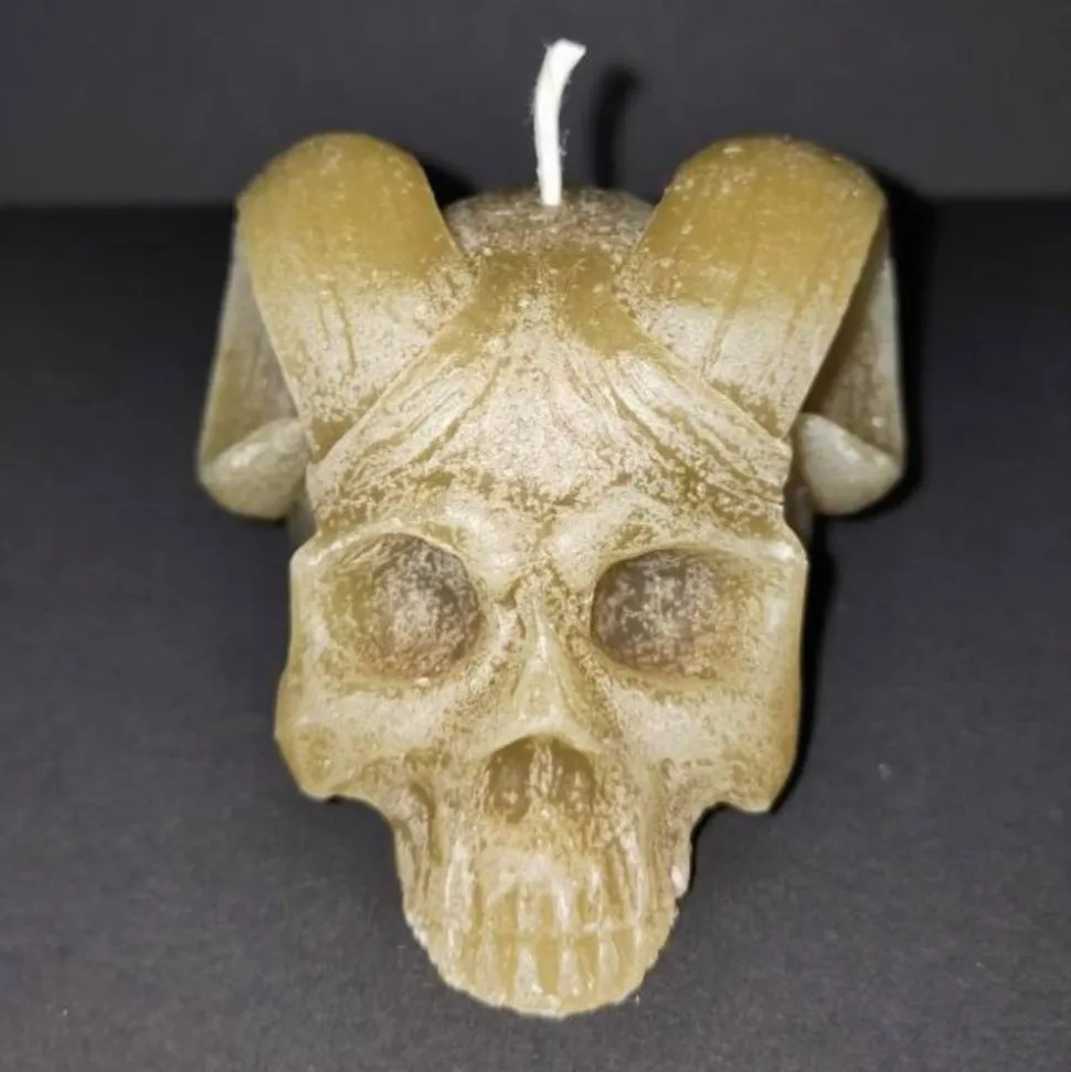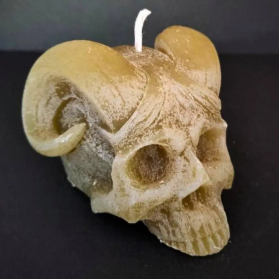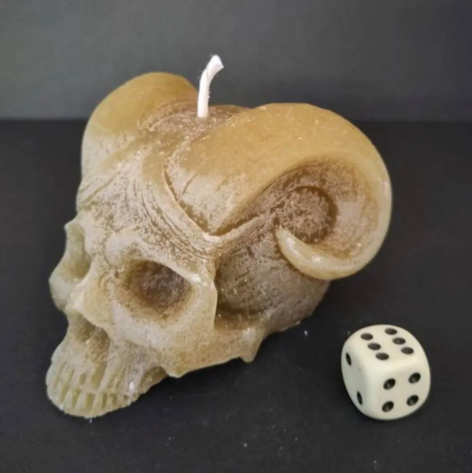 Darf’s ein bisschen düsterer sein? Diese außergewöhnliche Kerze in Form eines Schädels mit gewaltigen Hörnern ist nichts für schwache Nerven – aber ein echter Blickfang für alle, die das Besondere lieben. Ob als Dekoration für dein Wohnzimmer, als mystisches Accessoire für Fantasy- oder Gothic-Fans oder als stimmungsvolle Ergänzung für Halloween: Mit diesem Stück holst du dir ein echtes Unikat nach Hause.