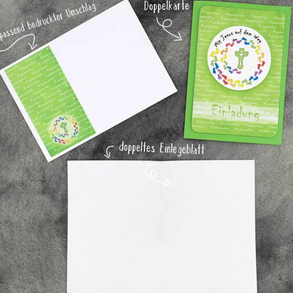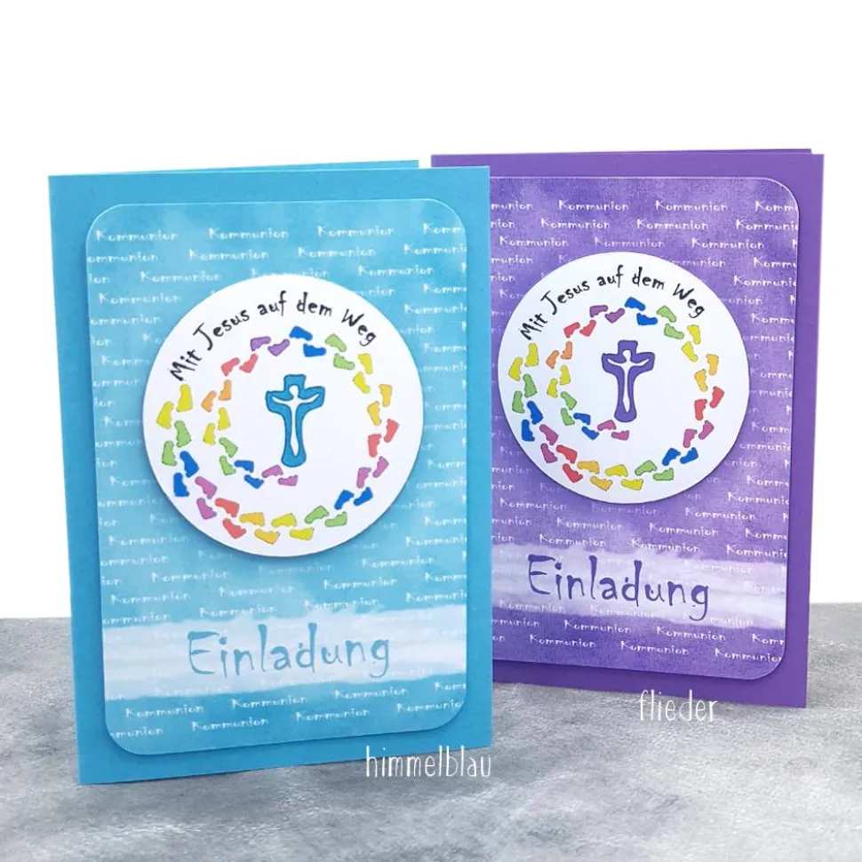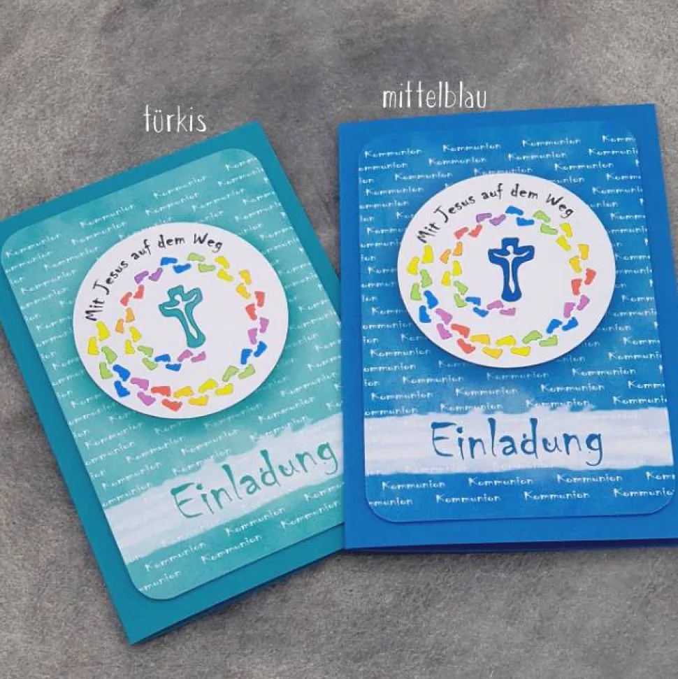 Handgemachte Einladungskarte Kommunion – Mit Jesus auf dem Weg