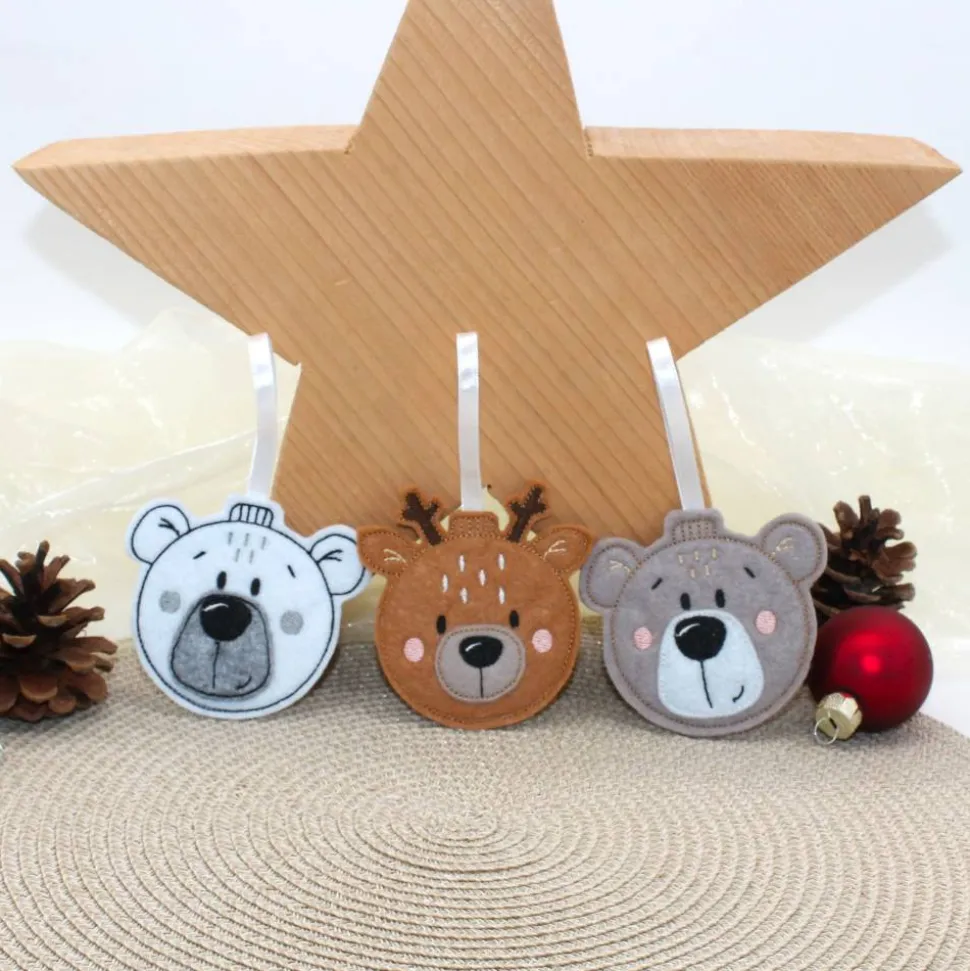 Erhältlich als Eisbär-Kopf, Bär-Kopf oder Reh-Kopf in süßer Christbaumkugelform, sind sie das perfekte Accessoire für alle, die Handarbeit und detailreiche Weihnachtsdeko lieben.