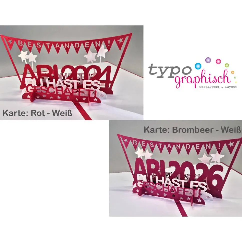 Das Abitur ist ein ganz besonderer Meilenstein – und verdient eine ebenso besondere Karte! Diese liebevoll handgefertigte Pop-up-Karte sorgt beim Öffnen für einen echten Wow-Effekt: Ein kunstvoll gefaltetes 3D-Motiv entfaltet sich und macht die Glückwünsche zu etwas ganz Einzigartigem.
