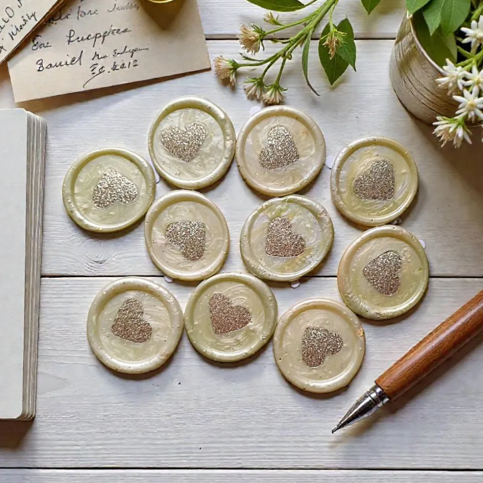 Verleihe deinen Briefen und Einladungen das gewisse Etwas mit diesen einzigartigen, handgefertigten Wachssiegel-Aufklebern mit goldenen Herzen!