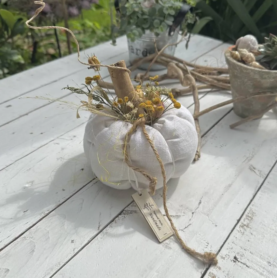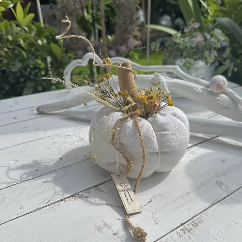 Hol dir ein einzigartiges Deko-Highlight in dein Zuhause: Dieser handgemachte Kürbis aus antikem, fein gewebtem Leinen in Rohweiß und Grau ist die perfekte Landhausdeko für den Herbst. Genieße die natürliche Ausstrahlung und besondere Haptik, denn jedes Stück ist ein echtes Unikat.