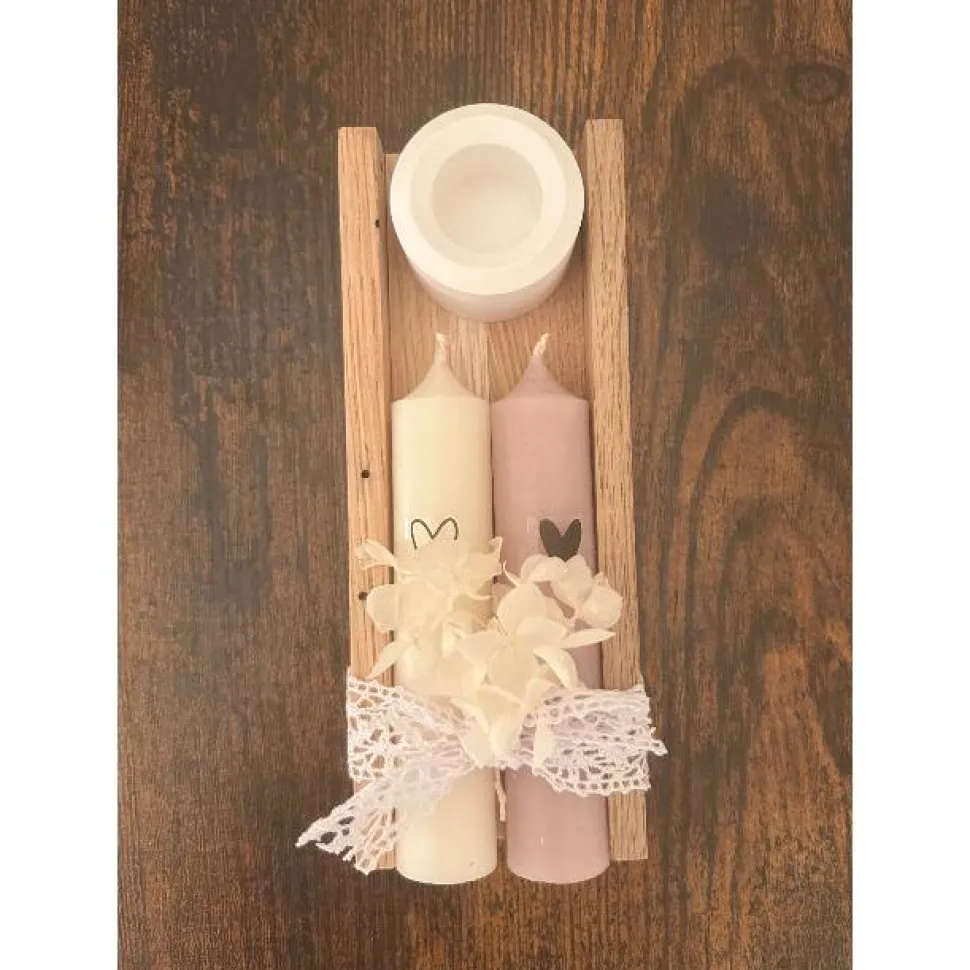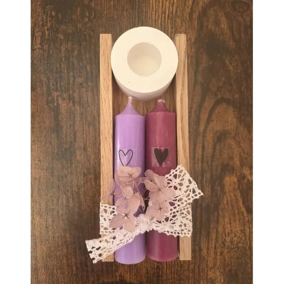 Dekoratives Kerzenset mit Holzhalter – handgefertigte Geschenkidee mit Herz