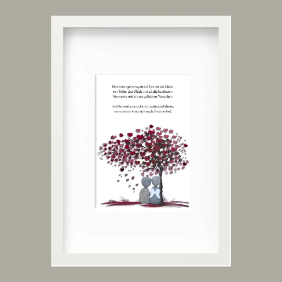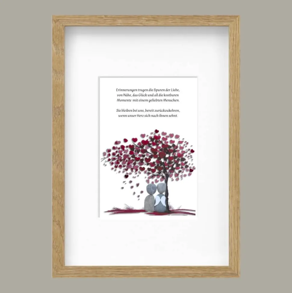 Erinnere dich an kostbare Momente mit einem handgefertigten Steinbild, das speziell als Trauergeschenk oder als liebevolles Andenken gestaltet ist. Jedes Bild wird individuell nach deiner Bestellung gefertigt und besteht aus sorgfältig ausgewählten Natursteinen und einem einfühlsamen Spruch. So erhältst du ein einzigartiges Unikat, das Trost spendet und die Erinnerung an einen besonderen Menschen bewahrt.