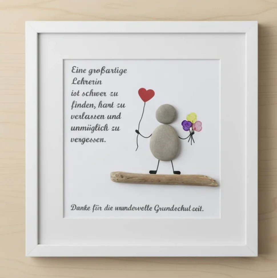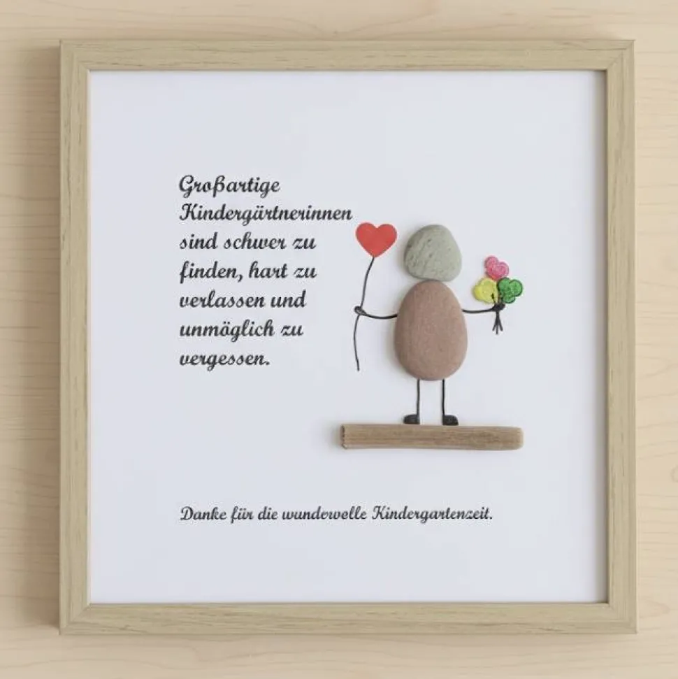 Ein wunderschönes handgefertigtes Steinbild als Dankeschön für Erzieherinnen – perfekt als persönliches Abschiedsgeschenk zum Kindergartenende.