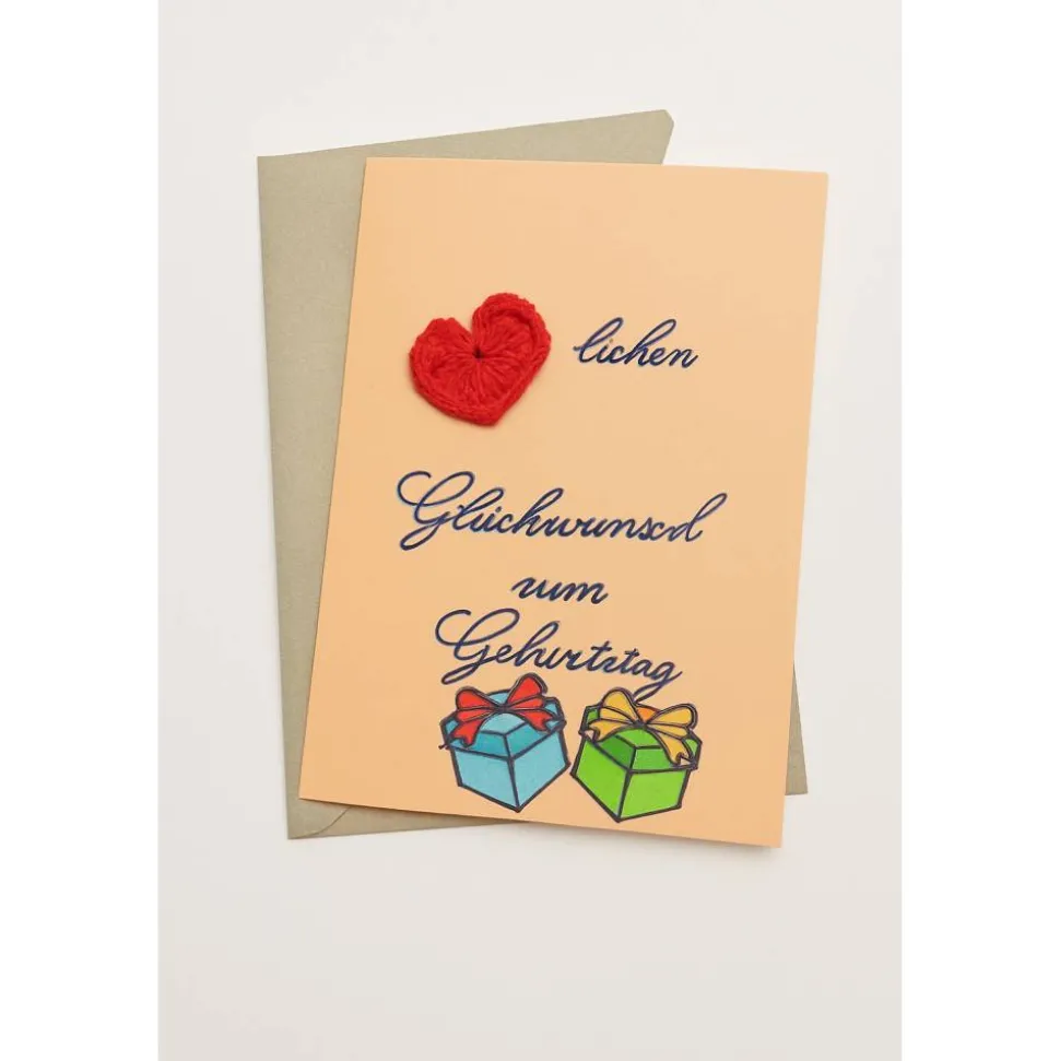Diese Klappkarte im Format DIN A6 wurde in liebevoller Handarbeit gestaltet: kunstvoll bemalt und mit dekorativen Häkelelementen versehen. Jedes Exemplar ist ein Unikat und kann leichte Abweichungen in Farbe und Gestaltung aufweisen.
