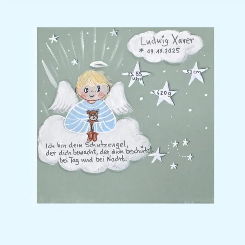 Suchen Sie ein einzigartiges Taufgeschenk für einen Jungen? Dieses handgemalte Schutzengelbild mit Teddy – ist ein bezauberndes Geschenk, das Herzen berührt! 🙂